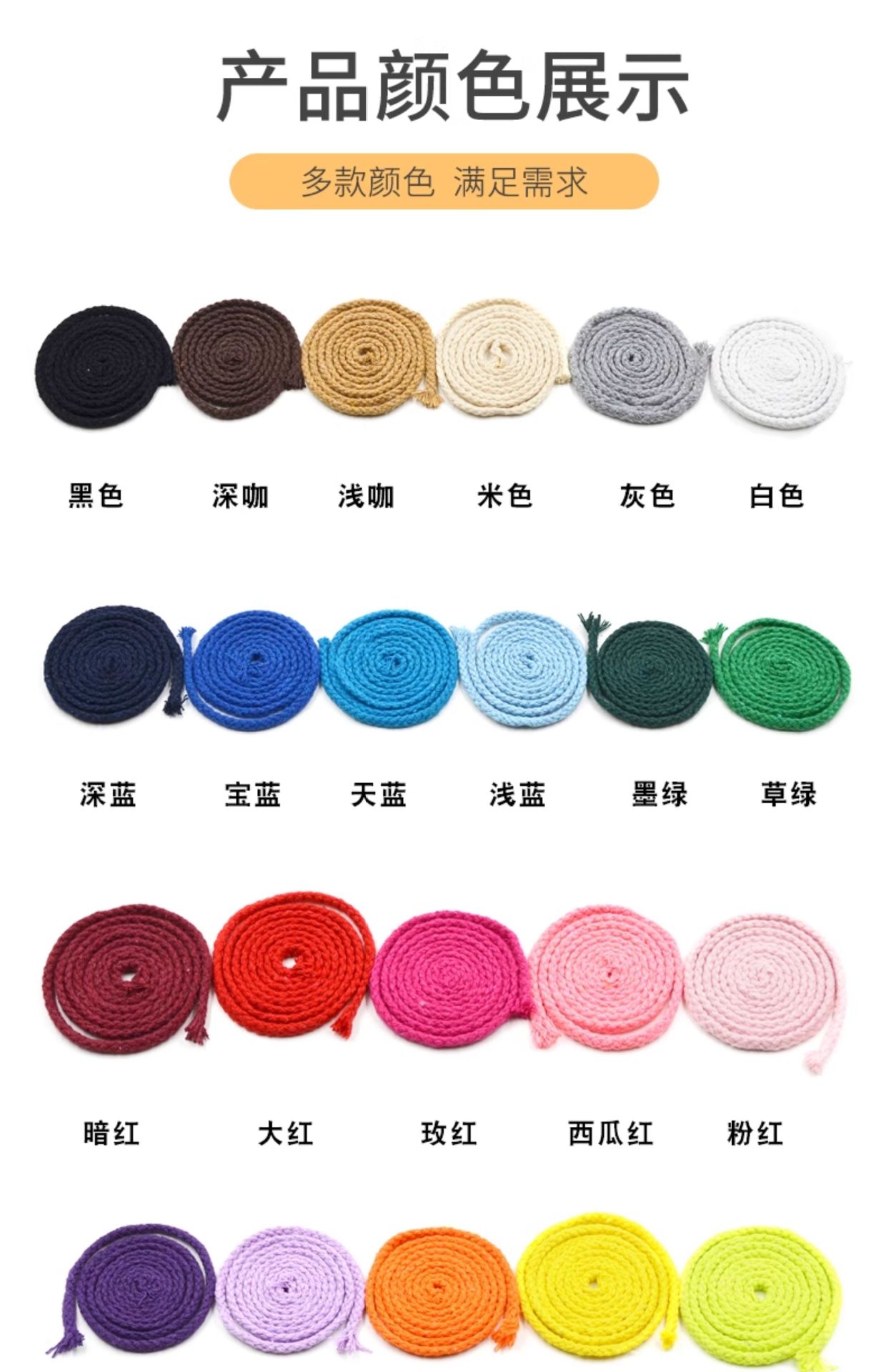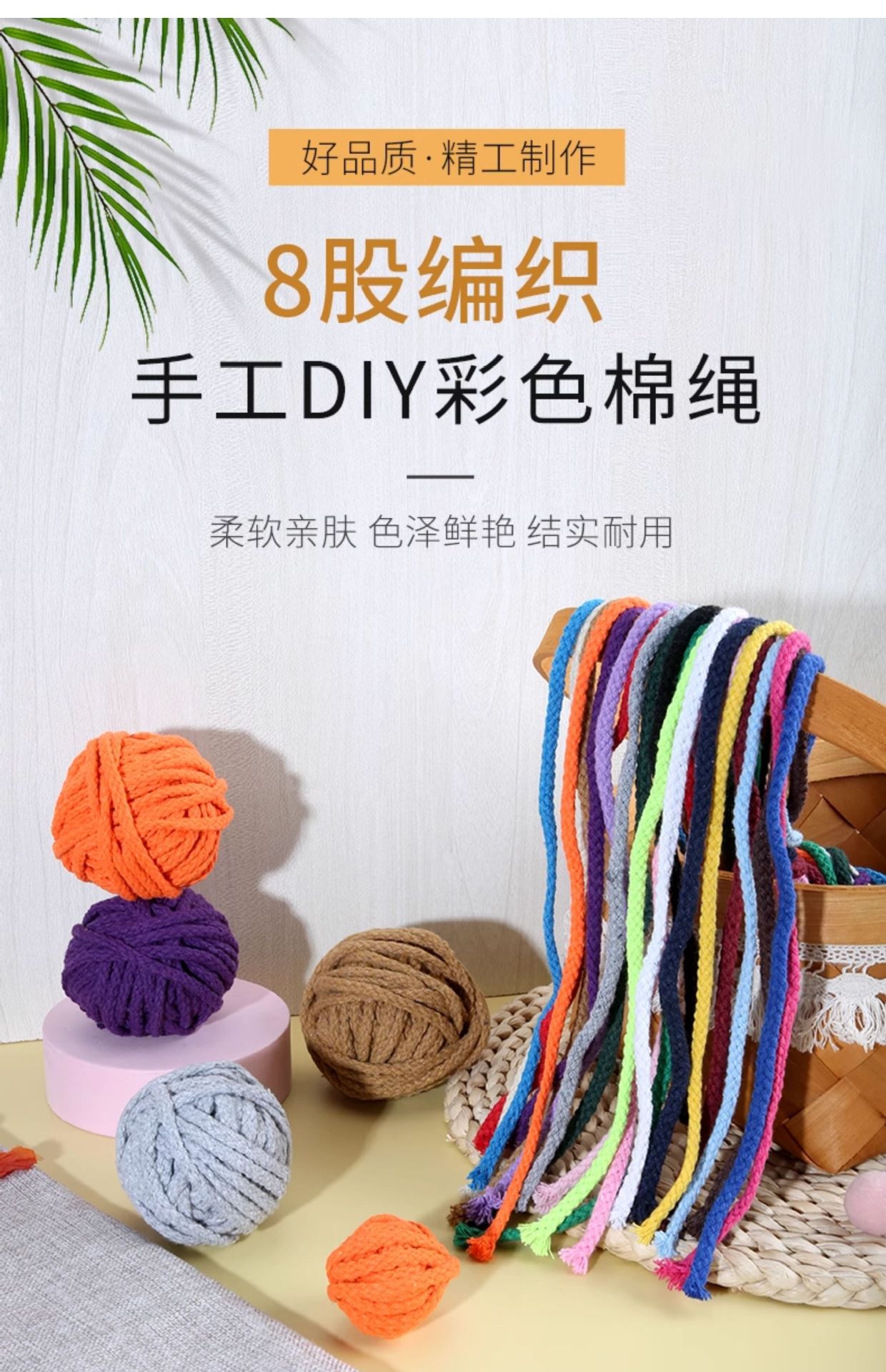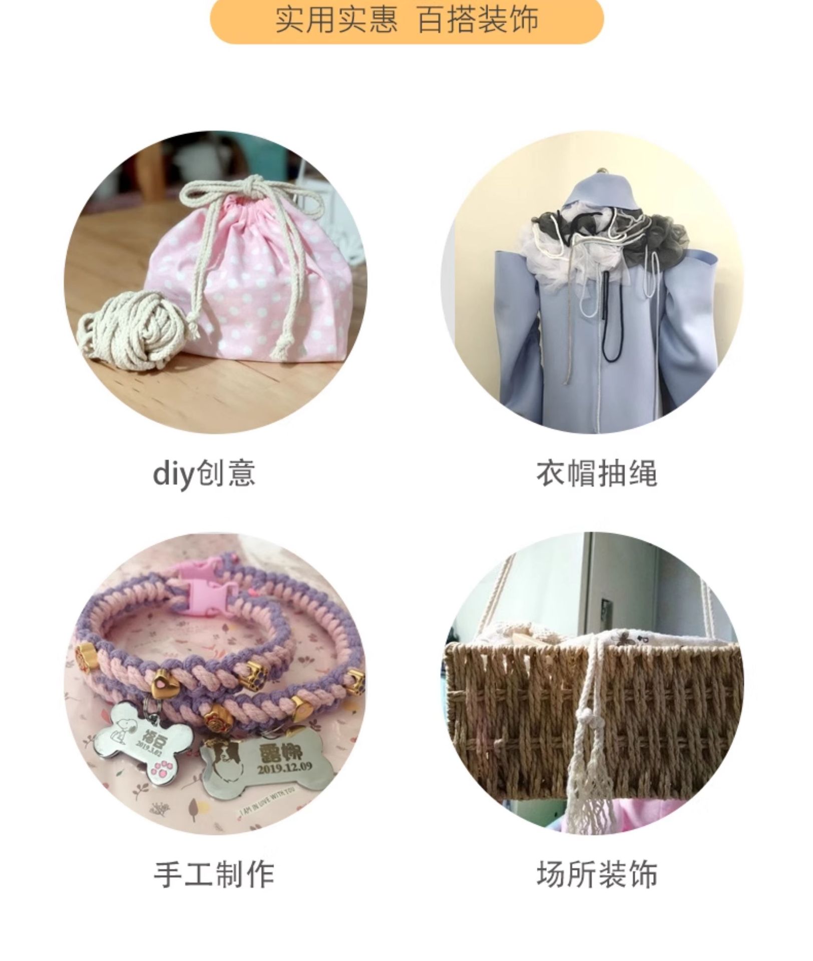 두께 5mm의 다채로운 면 로프 10m diy 손으로 짠 면 로프 8 가닥 묶음 로프 포켓 졸라 매는 끈 모자 로프스토어 가기