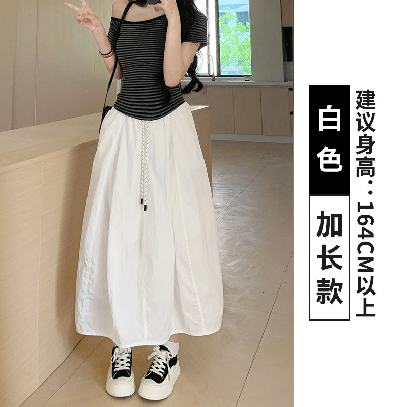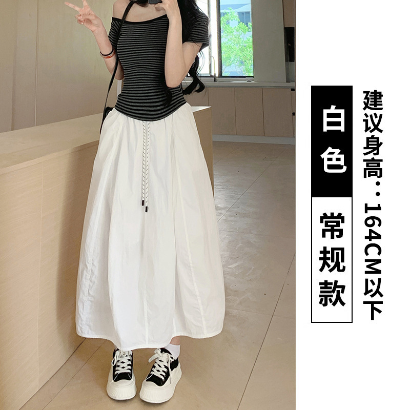 Yinxiangjia 심플 호박 스커트 소녀 스타일 중간 길이 여름 하이 웨이스트 슬리밍 스플 라이스 버드 스커트 여성 여름