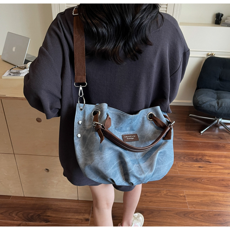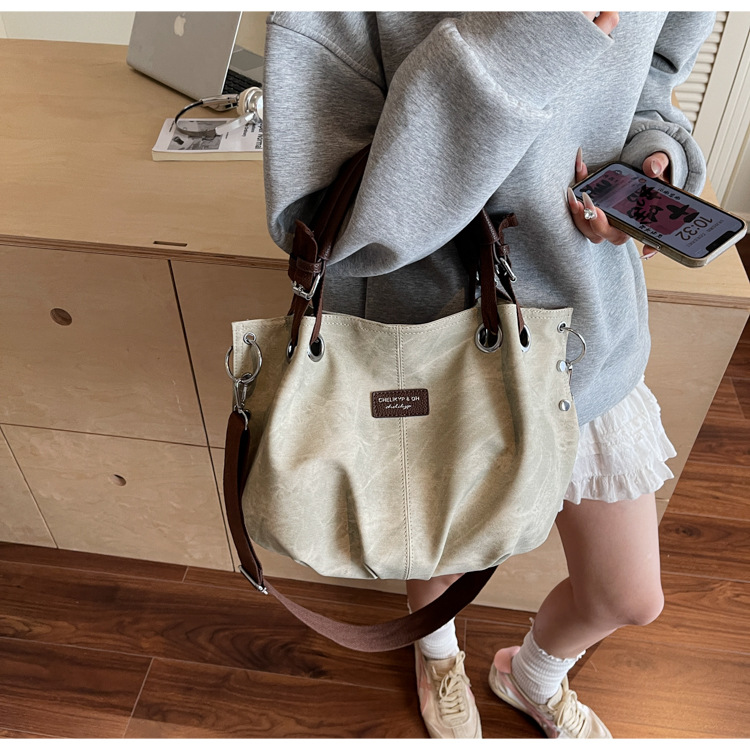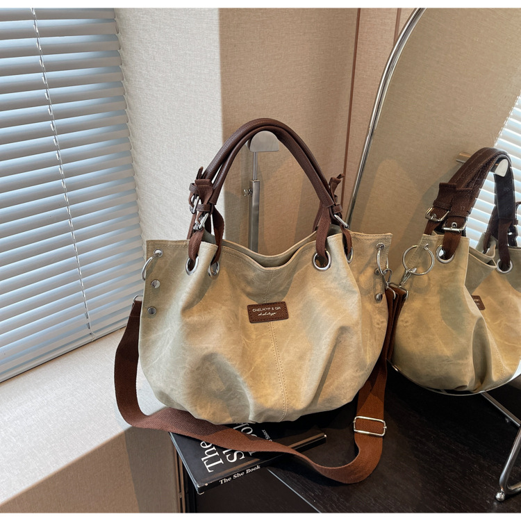 국경 간 대용량 2025 새로운 복고풍 캐주얼 스타일 간단한 휴대용 어깨 겨드랑이 토트 숄더 크로스 바디 백스토어 가기