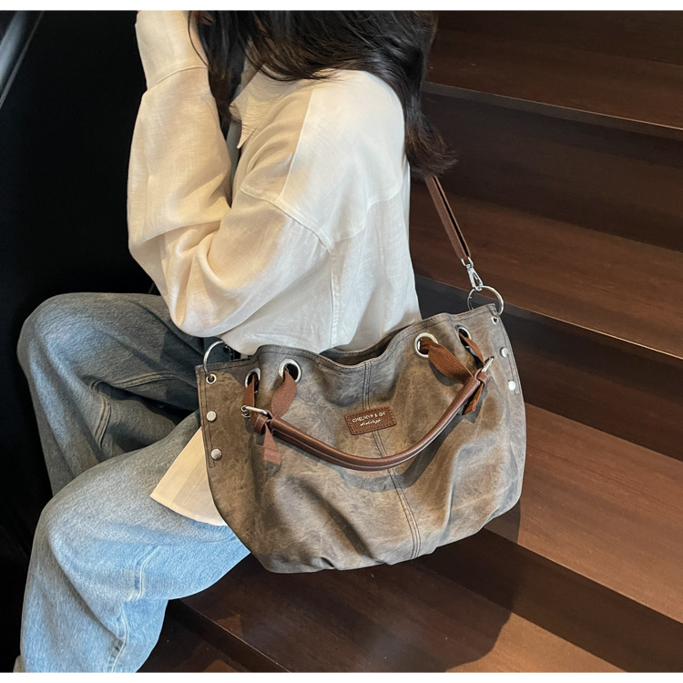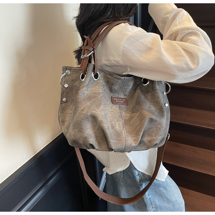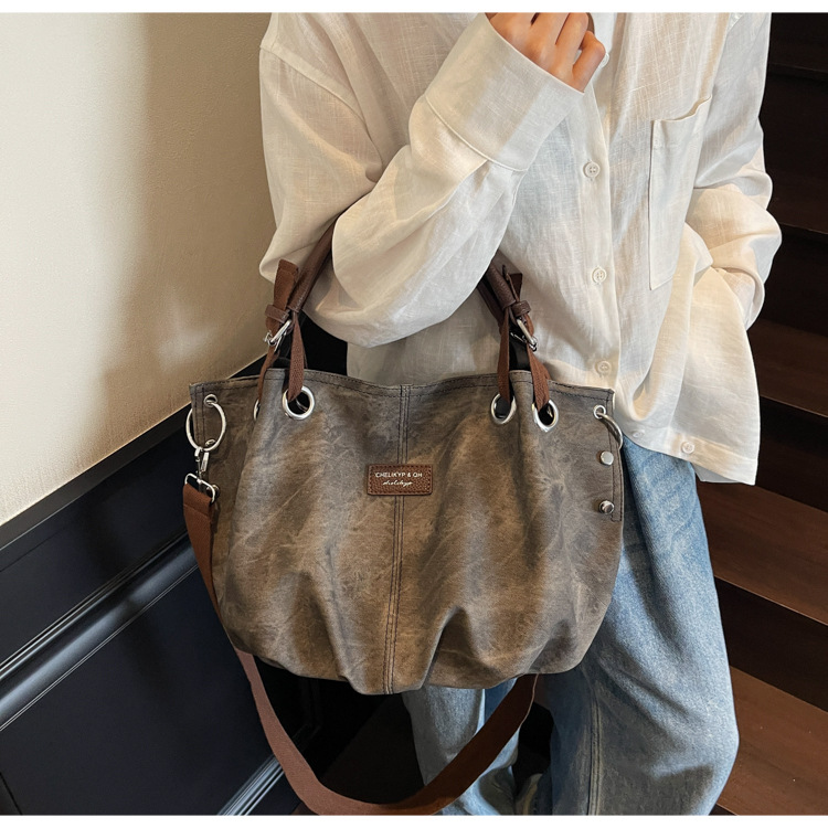 국경 간 대용량 2025 새로운 복고풍 캐주얼 스타일 간단한 휴대용 어깨 겨드랑이 토트 숄더 크로스 바디 백