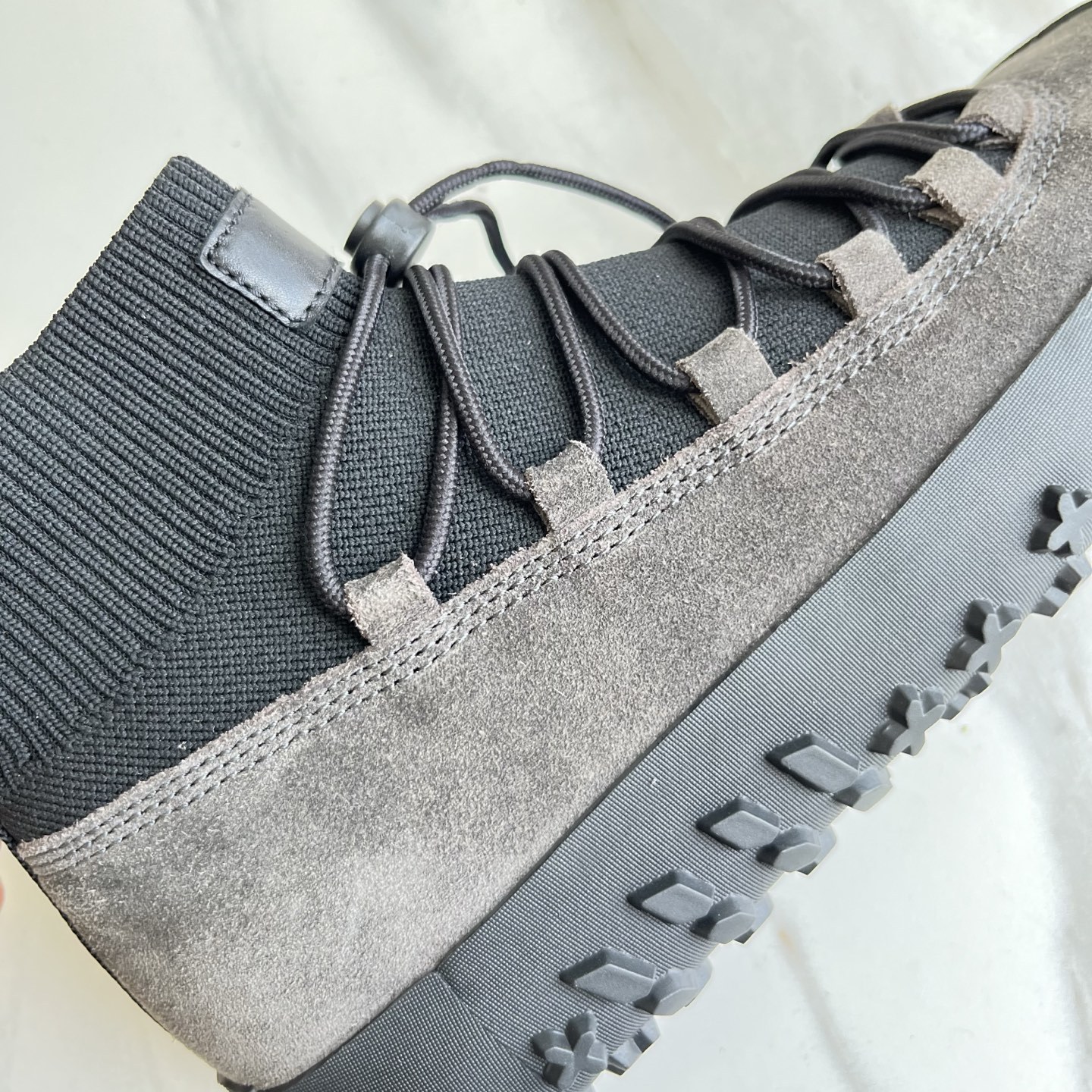 LEM 무표준 공동 브랜드 스포츠 양말 및 신발, 플라이 니트 스플라이싱 드로스트링 캐주얼 슈즈, 하이탑 두꺼운 밑창 야외 하이킹 슈즈