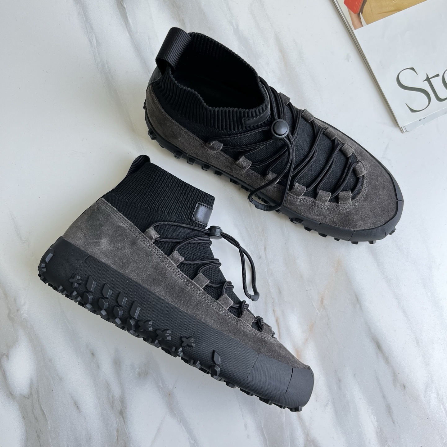 LEM 무표준 공동 브랜드 스포츠 양말 및 신발, 플라이 니트 스플라이싱 드로스트링 캐주얼 슈즈, 하이탑 두꺼운 밑창 야외 하이킹 슈즈스토어 가기
