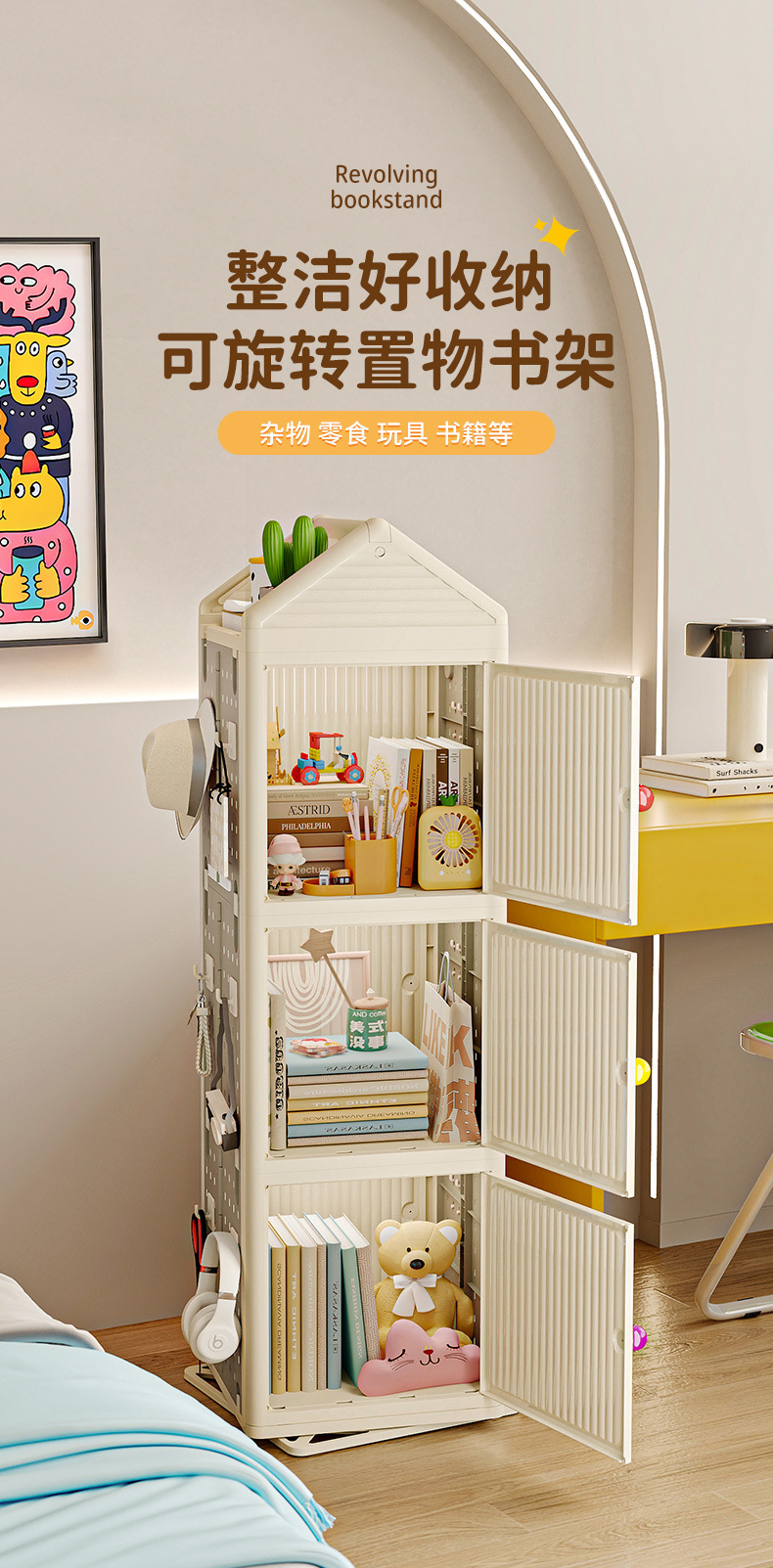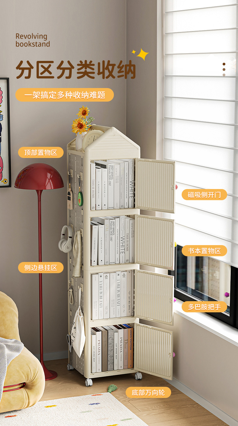 가정용 거실 디스플레이 바닥 책장 다층 공간 절약형 어린이 그림책 선반이 있는 맞춤형 360도 회전 선반스토어 가기