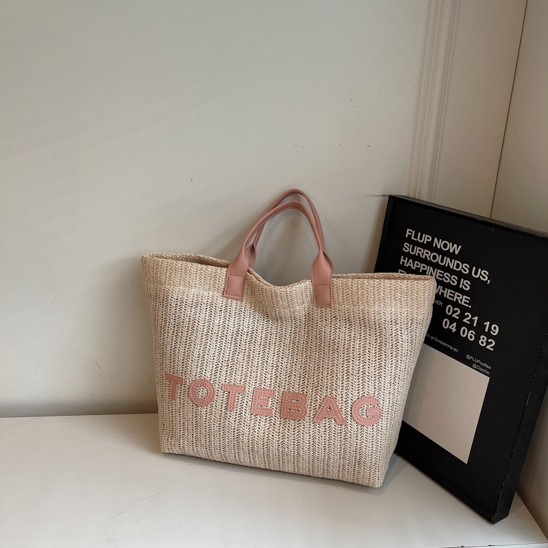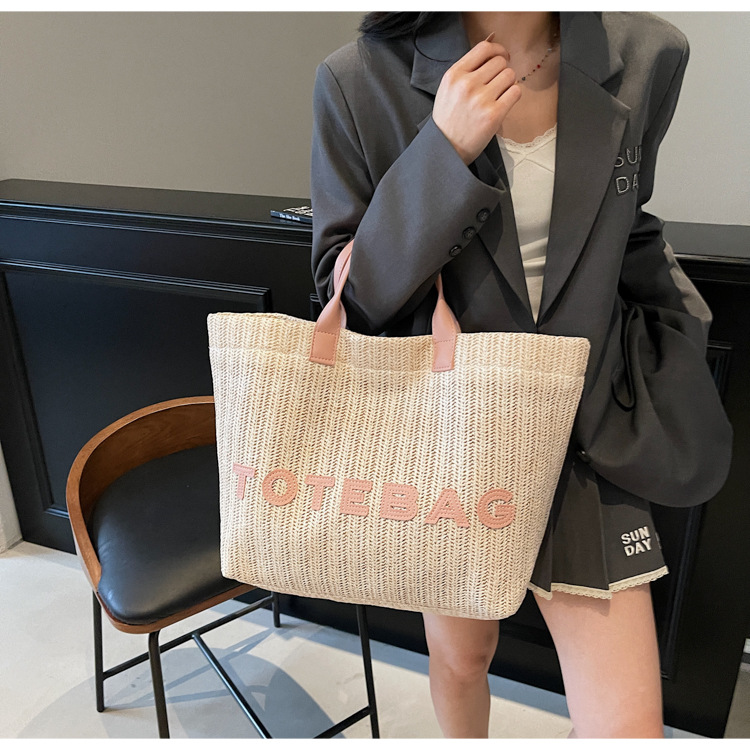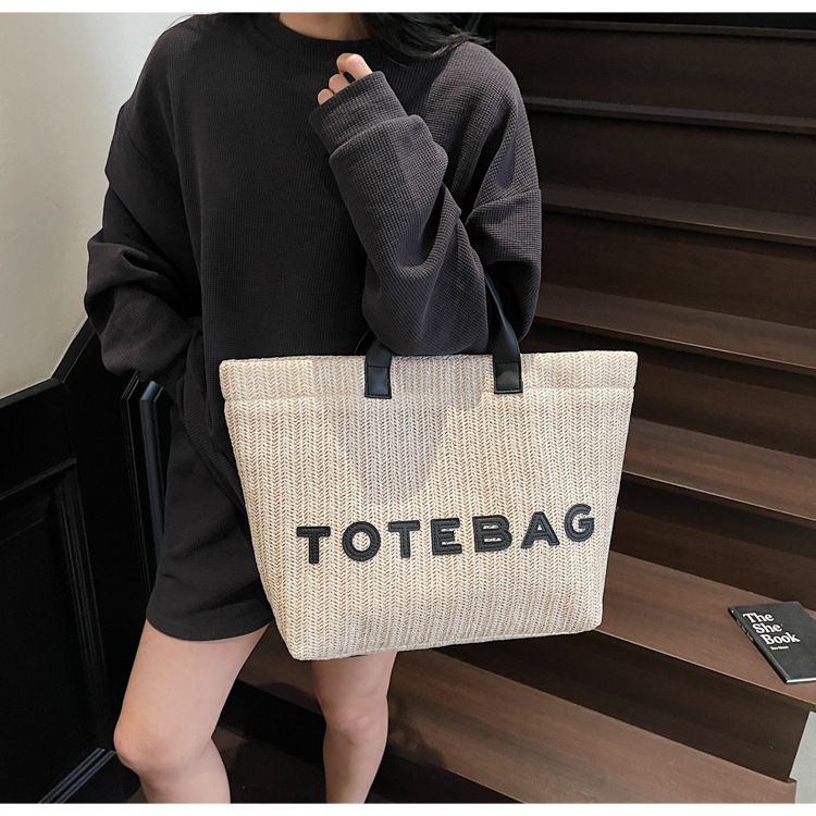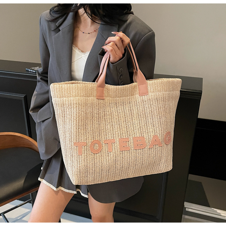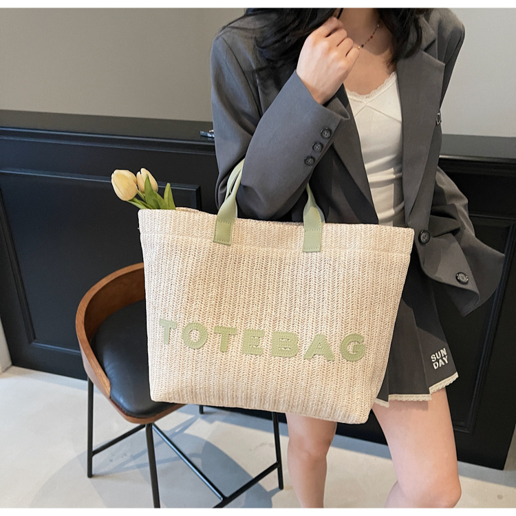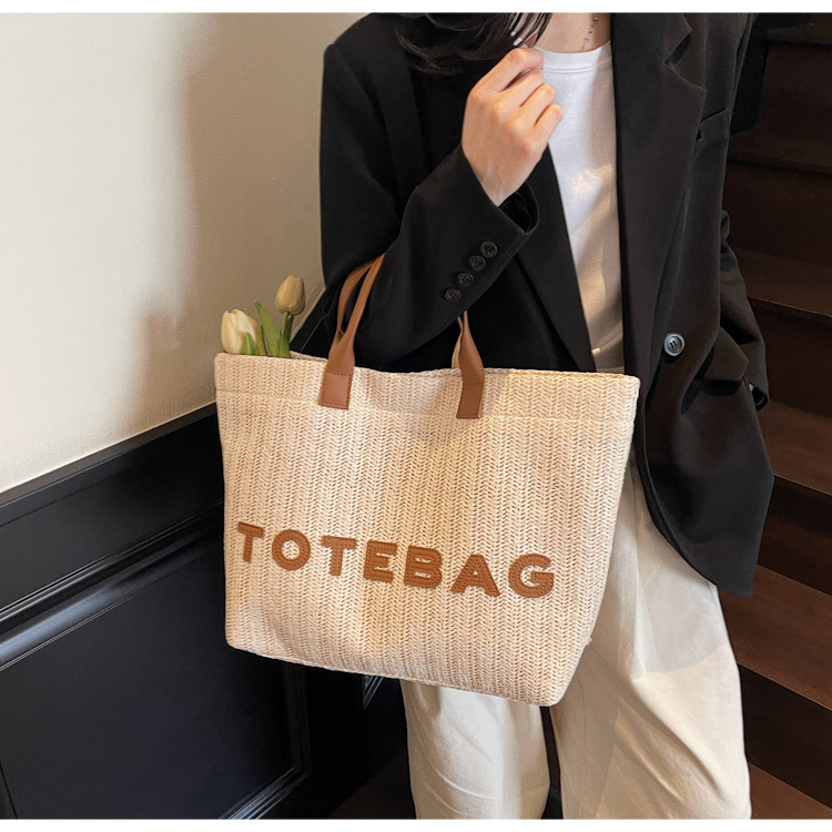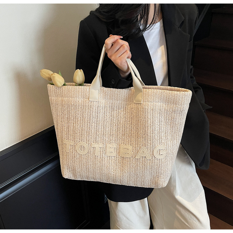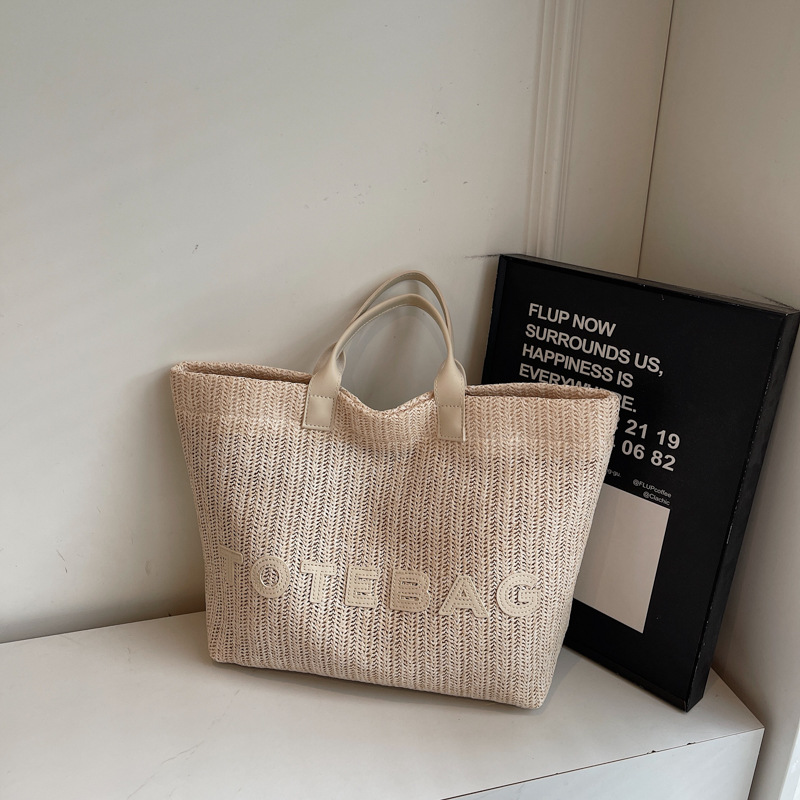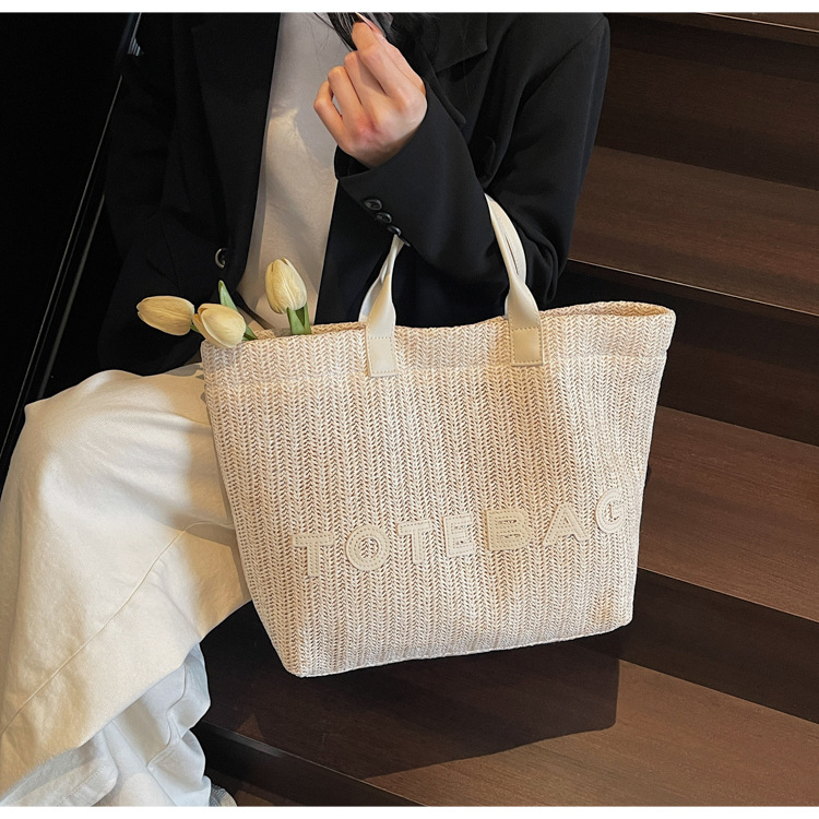 2025 여성용 밀짚 가방 대용량 새 여름 캐주얼 숄더백 심플한 질감의 해변 비치 백스토어 가기