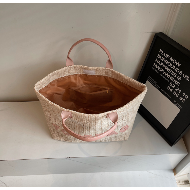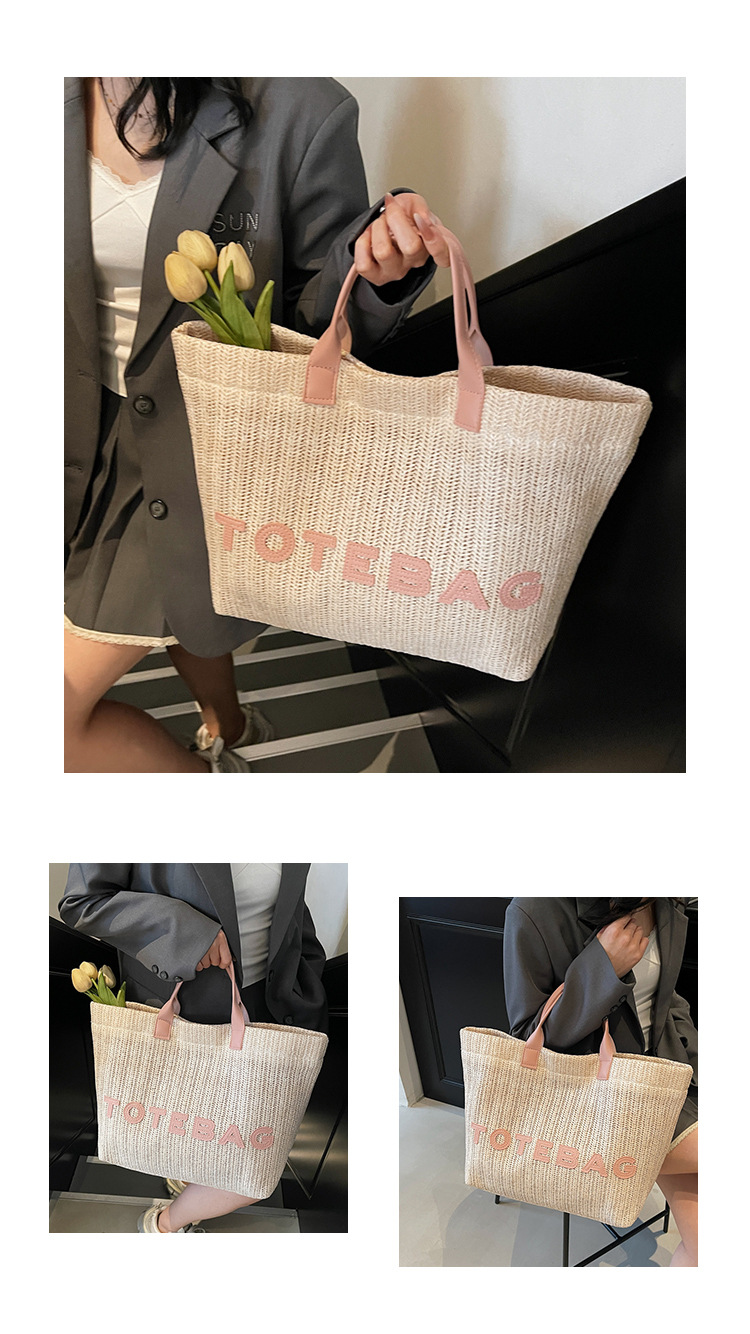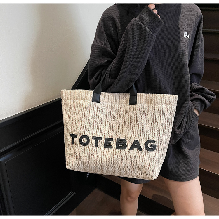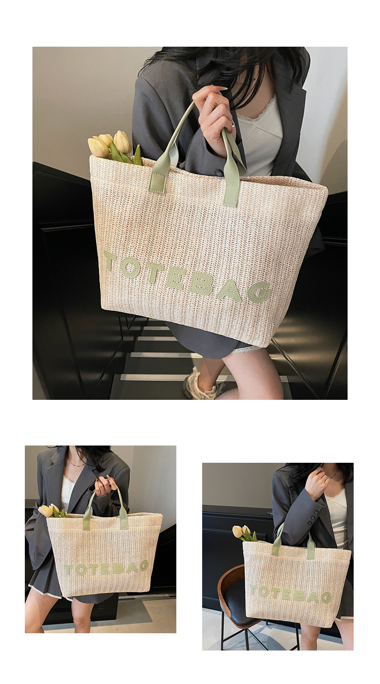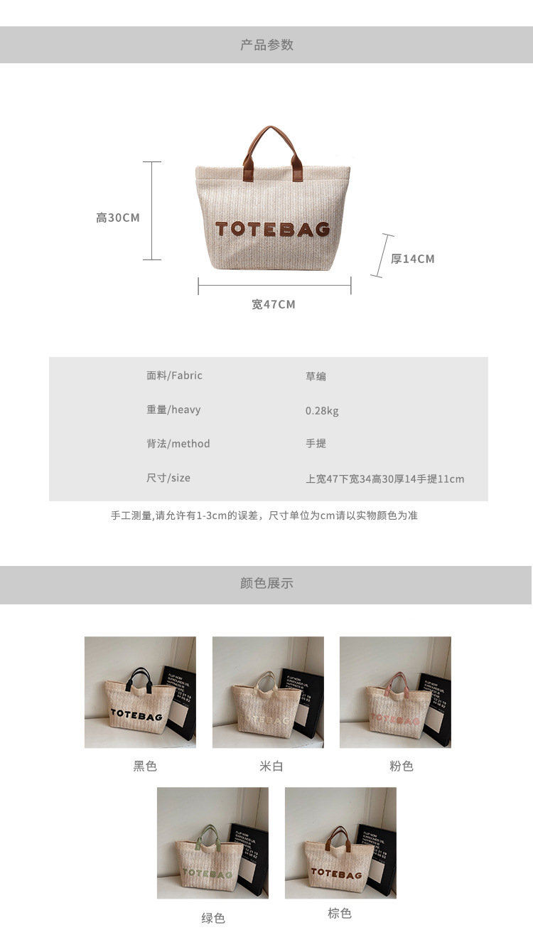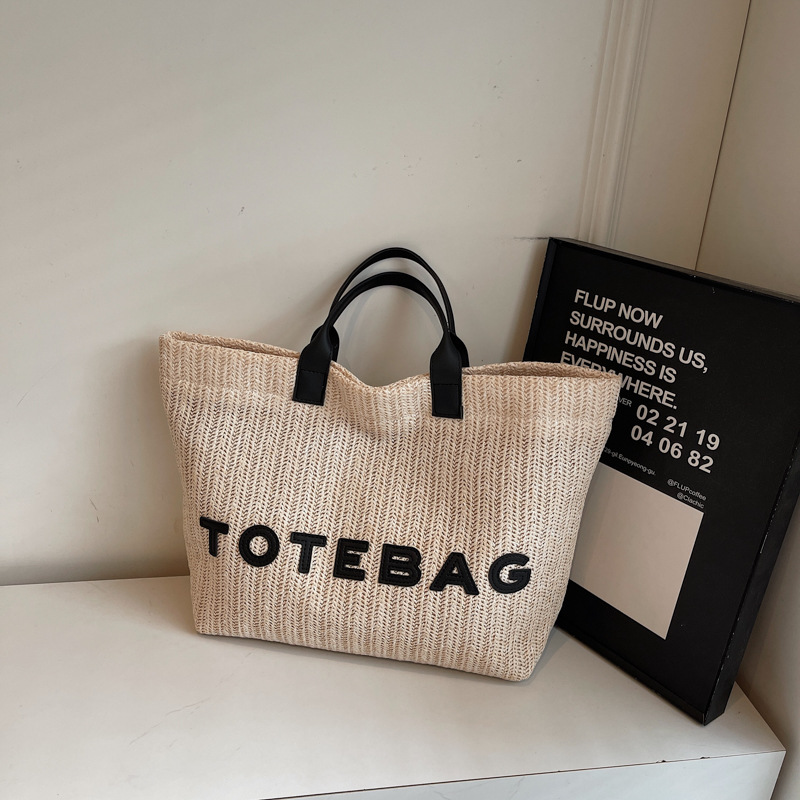 2025 여성용 밀짚 가방 대용량 새 여름 캐주얼 숄더백 심플한 질감의 해변 비치 백스토어 가기