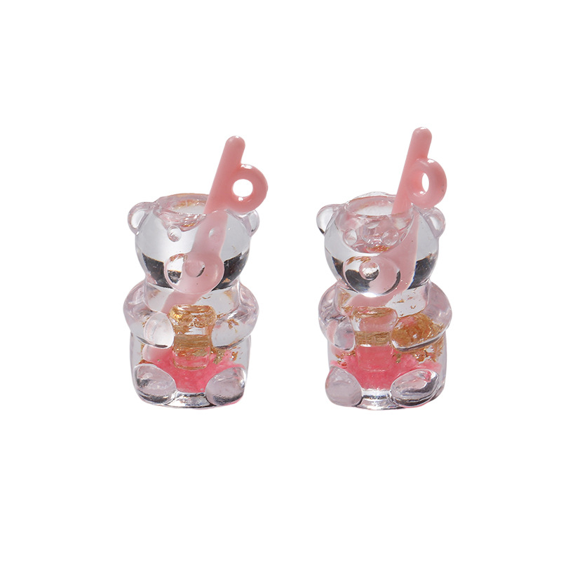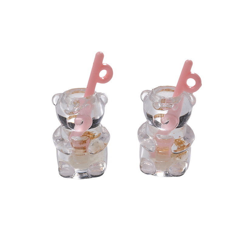 도매 귀여운 시뮬레이션 수지 쥬얼리 액세서리 곰 밀짚 컵 펜던트 diy 키 체인 A800774