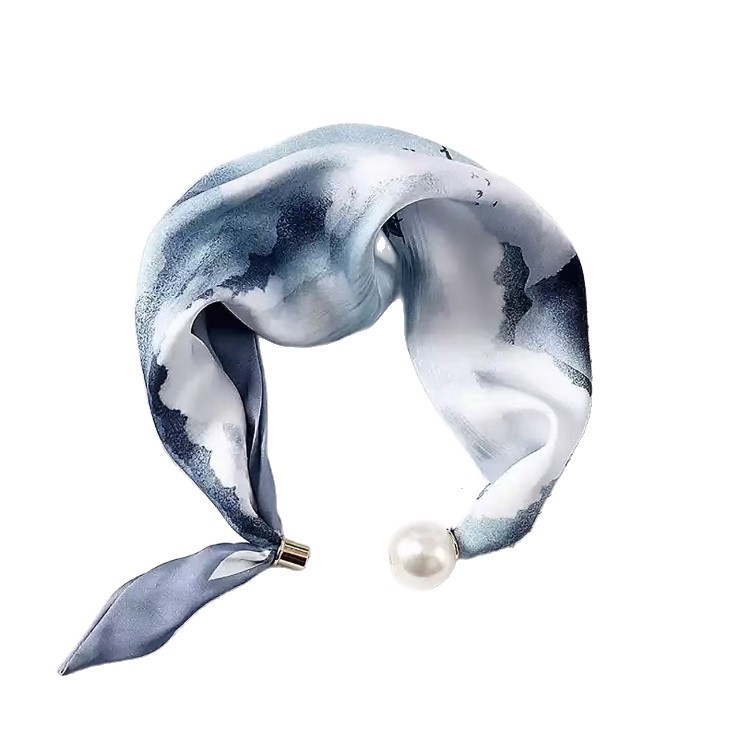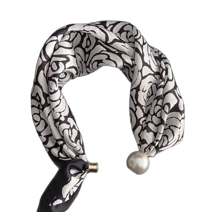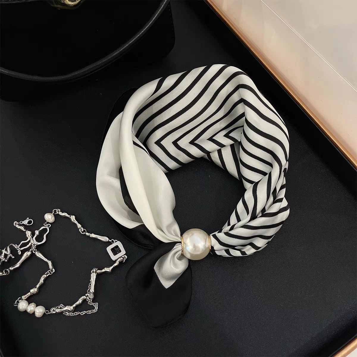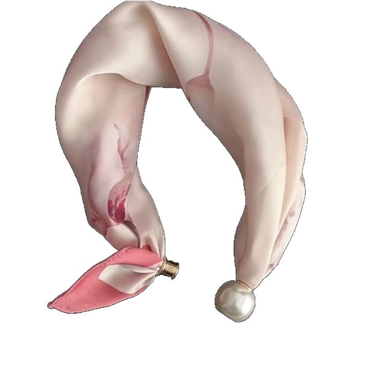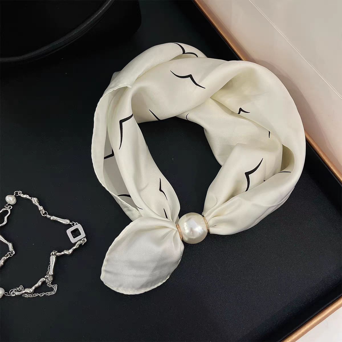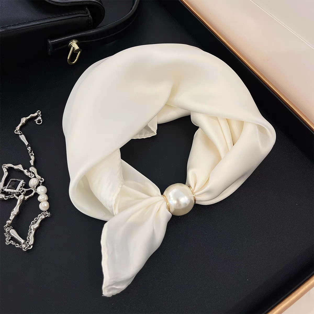 2025년 여름 새로운 스타일의 아이스 실크 새틴 비즈 자석 버클 스카프 여성 패션 다용도 목 보호 긴 스카프 여행 사진 스카프스토어 가기