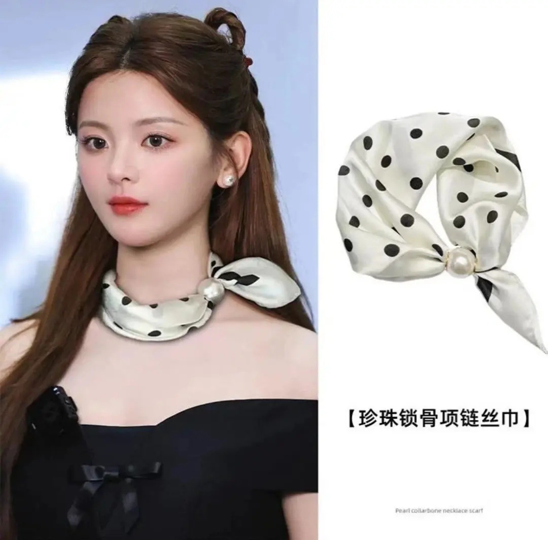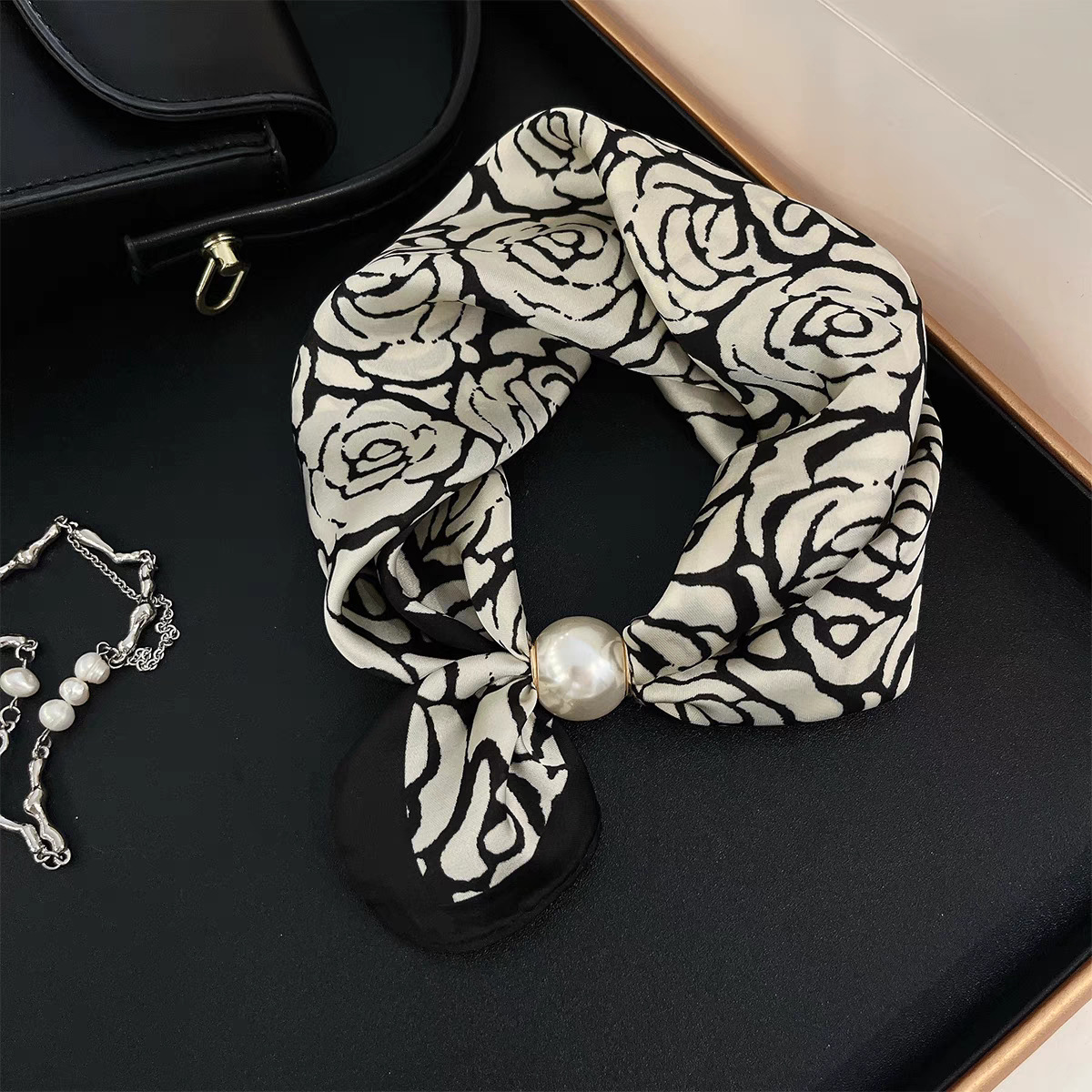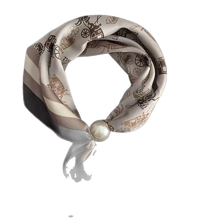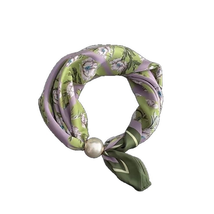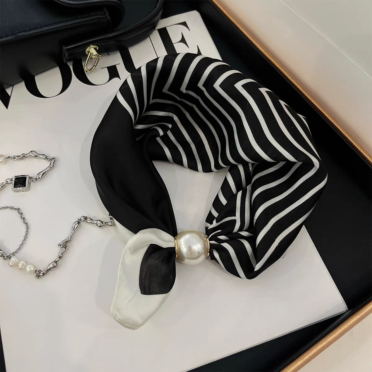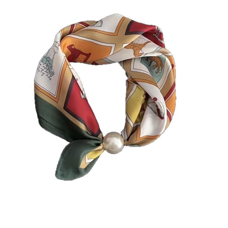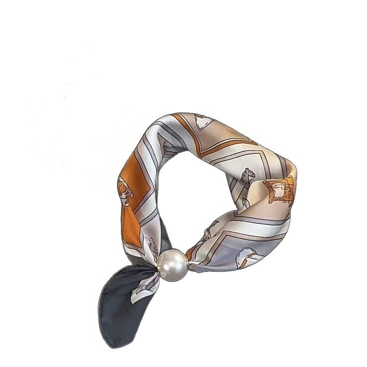 2025년 여름 새로운 스타일의 아이스 실크 새틴 비즈 자석 버클 스카프 여성 패션 다용도 목 보호 긴 스카프 여행 사진 스카프스토어 가기