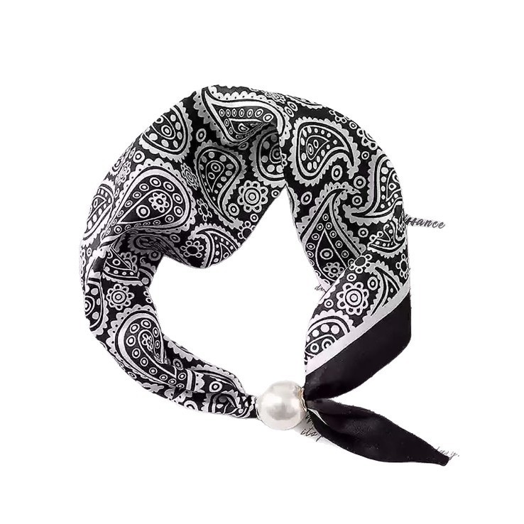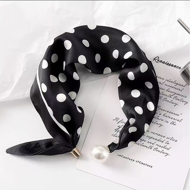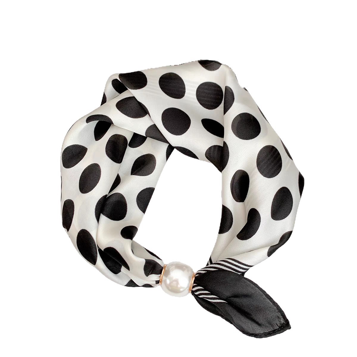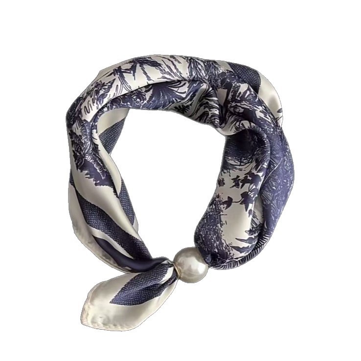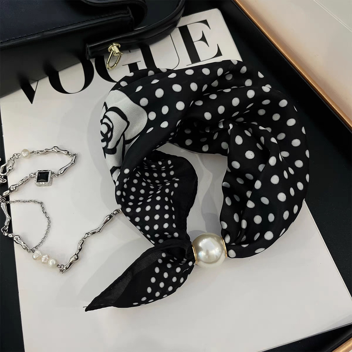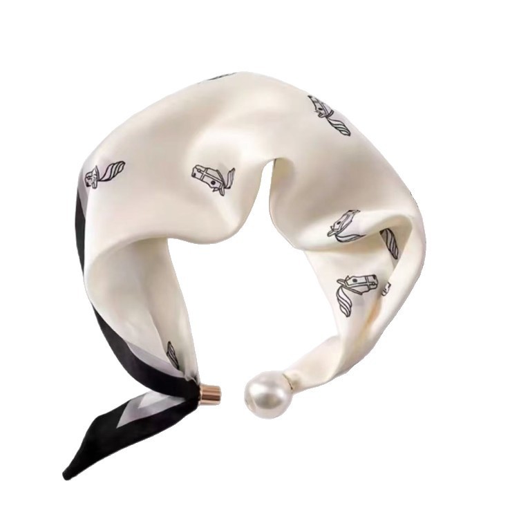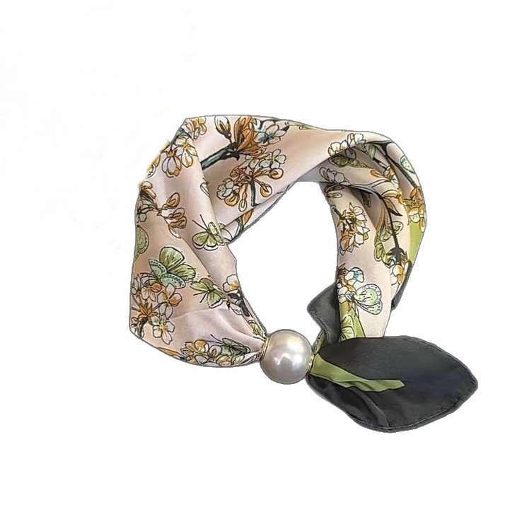 2025년 여름 새로운 스타일의 아이스 실크 새틴 비즈 자석 버클 스카프 여성 패션 다용도 목 보호 긴 스카프 여행 사진 스카프스토어 가기