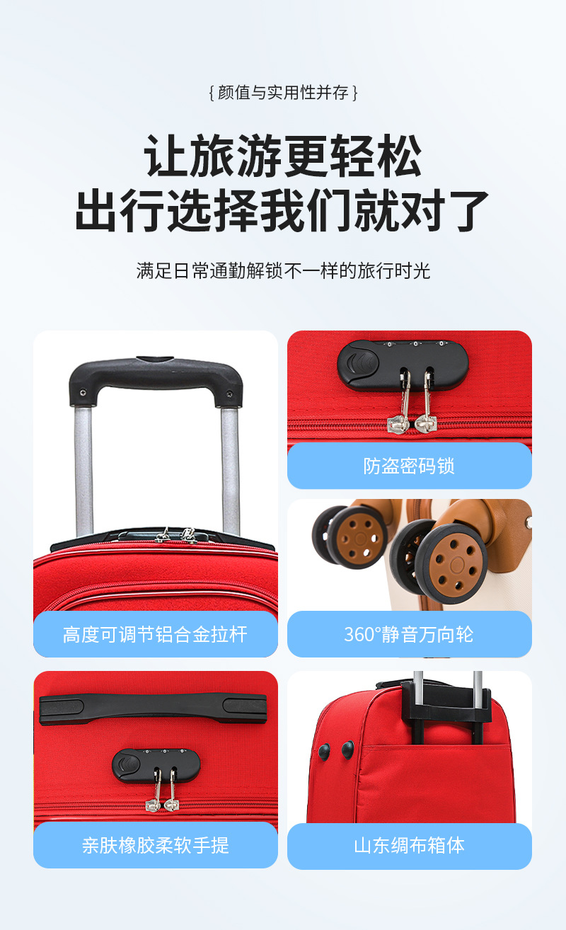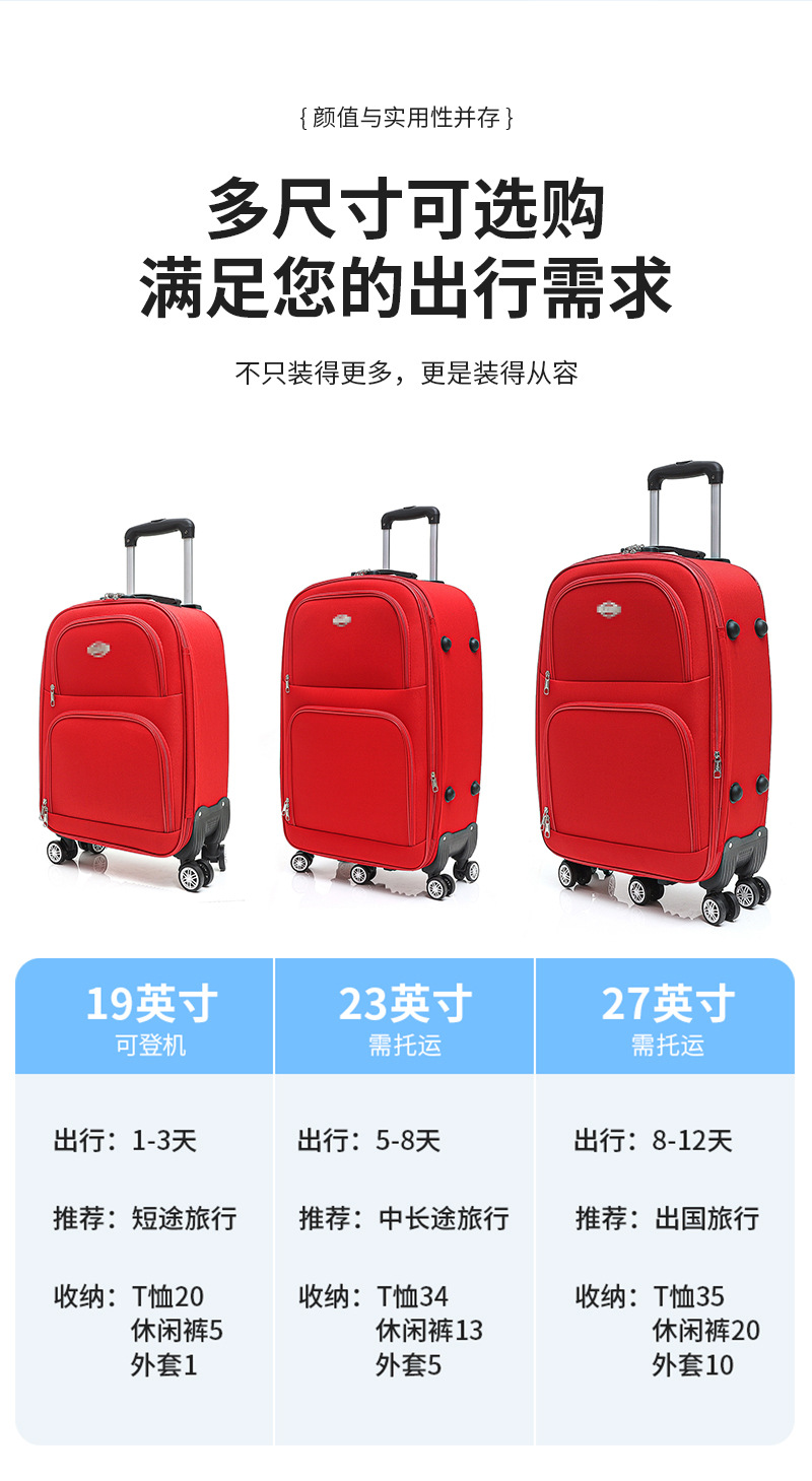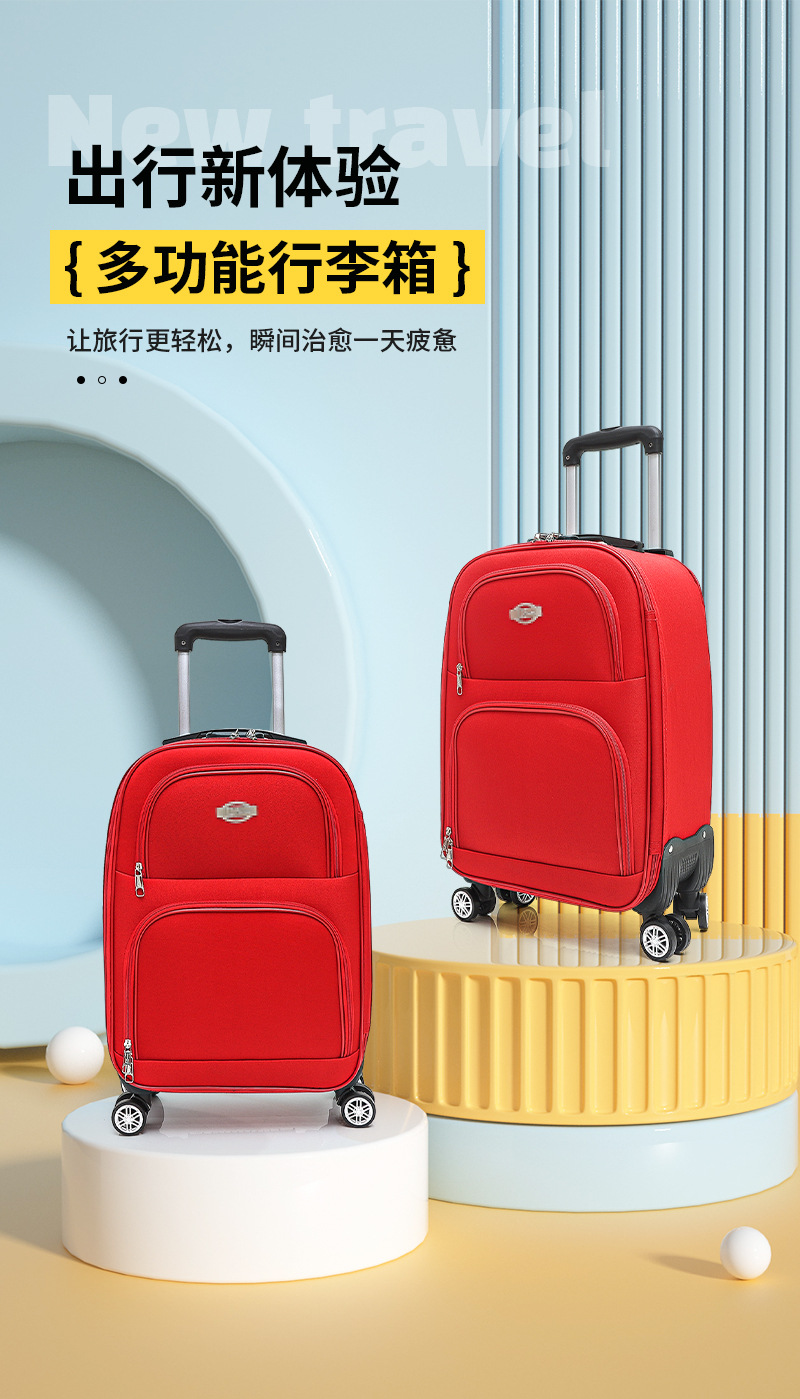 남성과 여성 학생을위한 빨간색 여행 가방 옥스포드 천 트롤리 케이스 유행 수하물 한국어 버전 캔버스 비밀번호 상자 외부 트롤리스토어 가기
