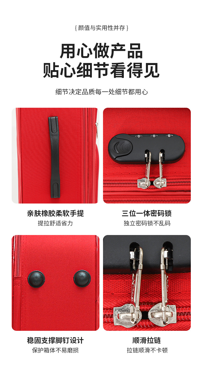 남성과 여성 학생을위한 빨간색 여행 가방 옥스포드 천 트롤리 케이스 유행 수하물 한국어 버전 캔버스 비밀번호 상자 외부 트롤리