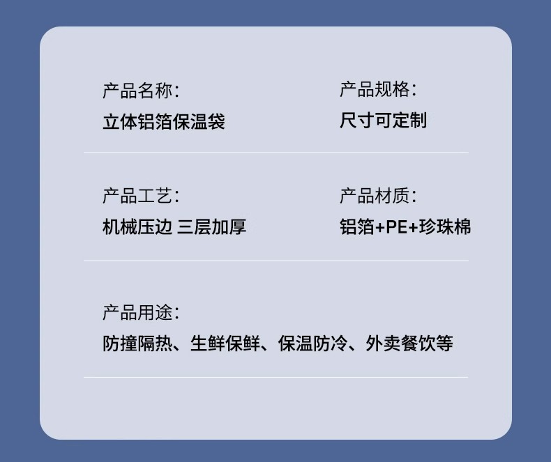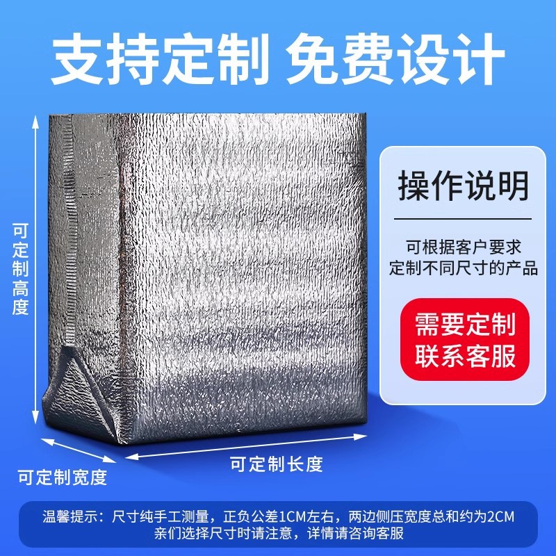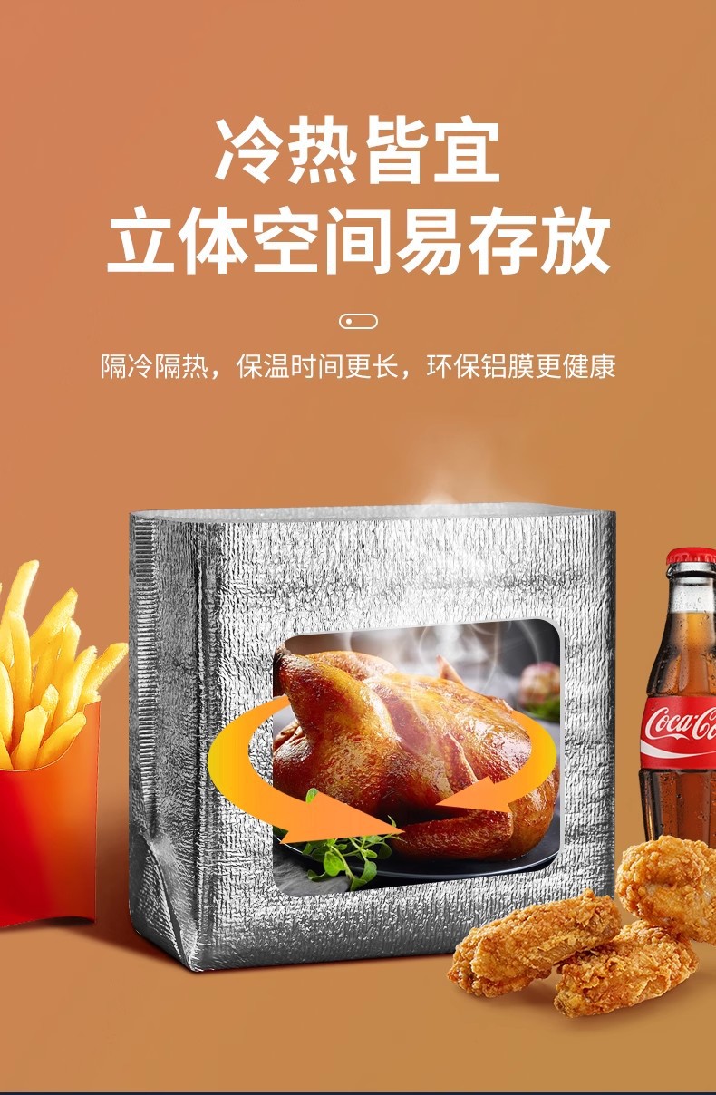 냉동식품, 과일보존, 냉장보관용 입체 알루미늄 호일 보온봉투, 대형 일회용 테이크아웃 익스프레스 특수상업용스토어 가기
