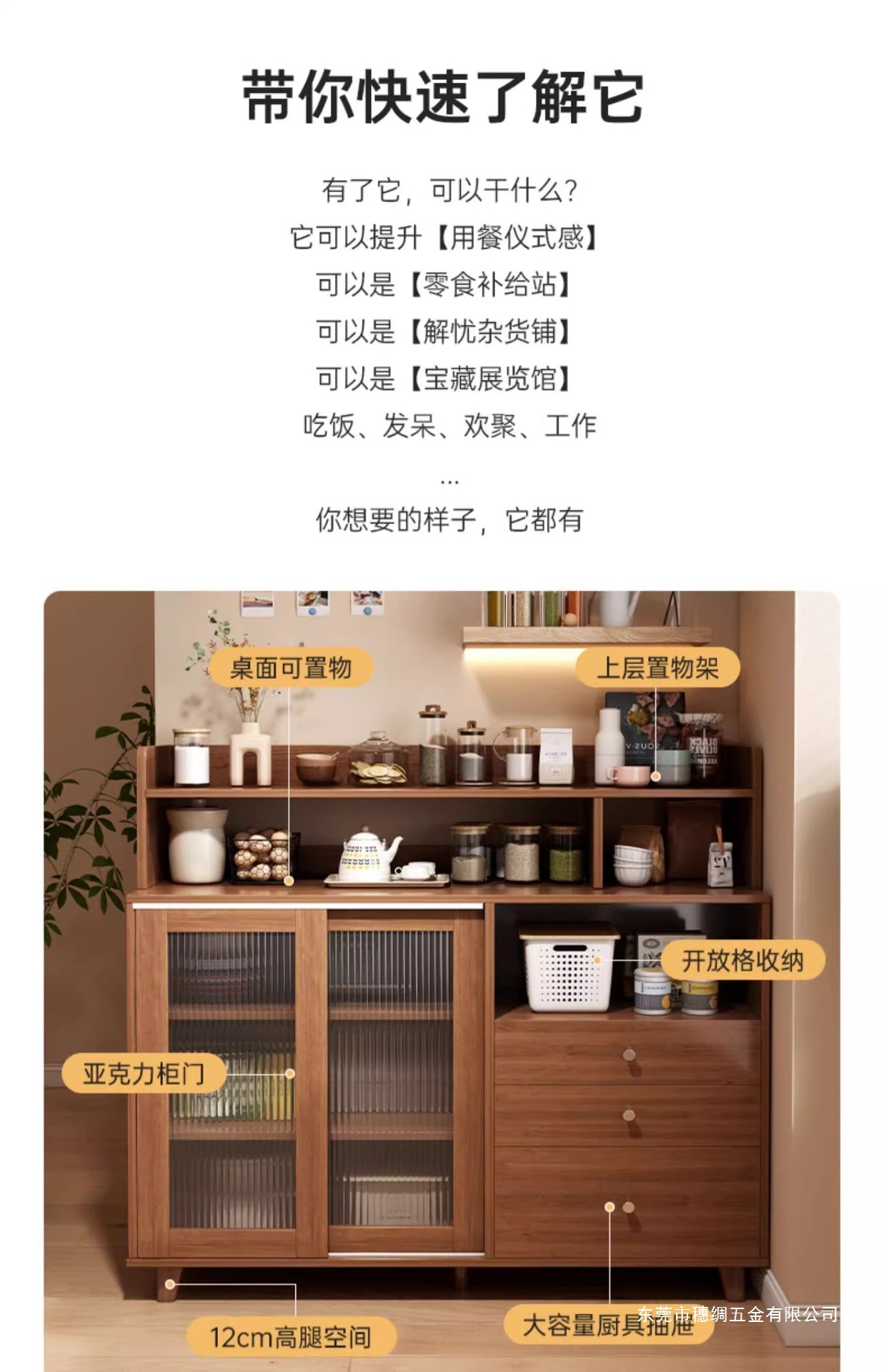 • (월넛컬러 + 높이높은수납선반) 아크릴 미닫이 찬장 (1200*360*1250mm)
