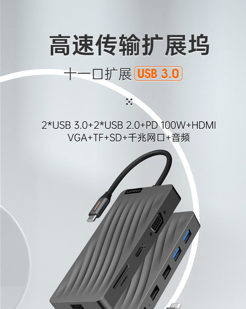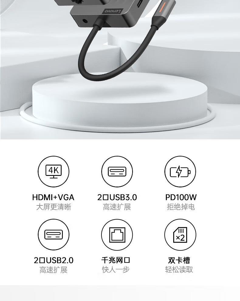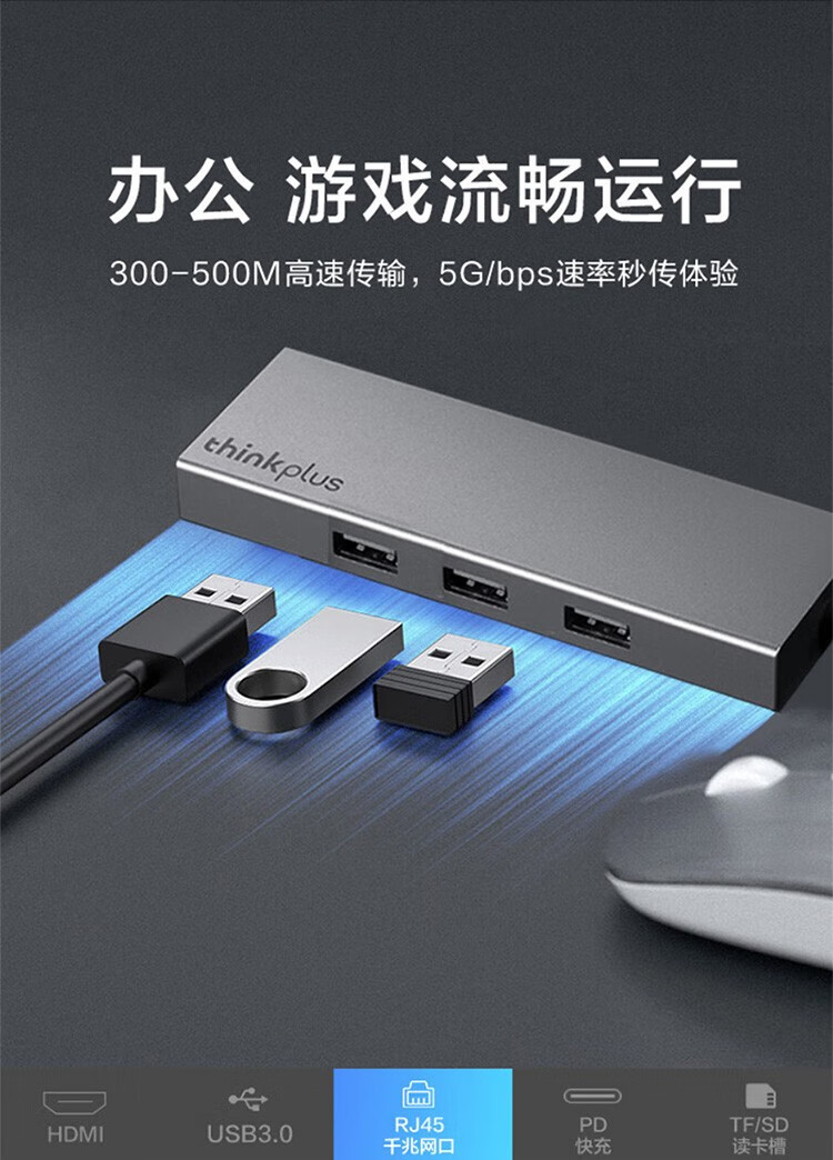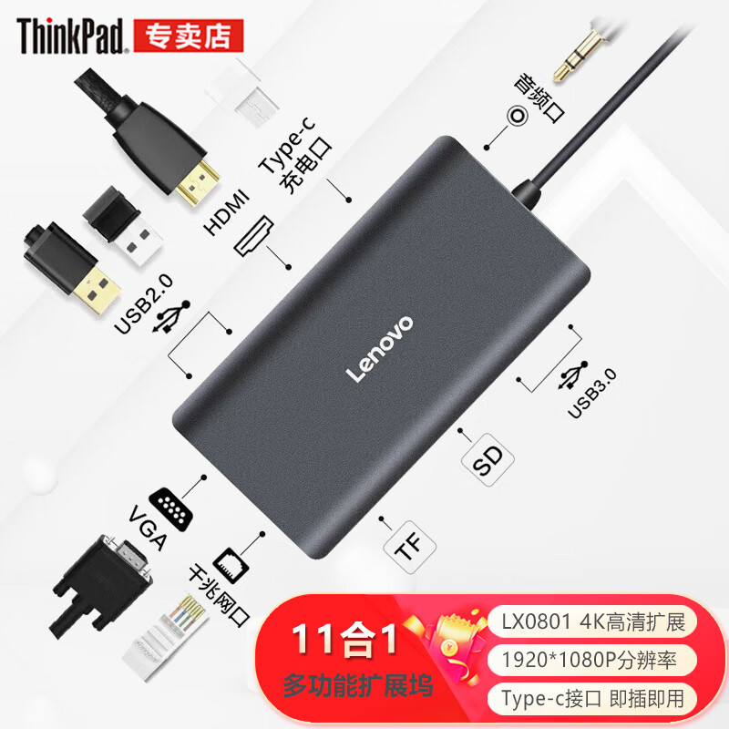 Lenovo LX0801Type-C 도킹 스테이션 분배기 HDMI 어댑터 RJ45 기가비트 네트워크 포트 PD 고속 충전에 적합스토어 가기