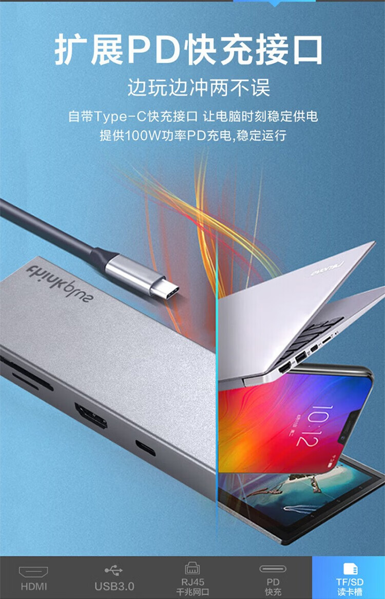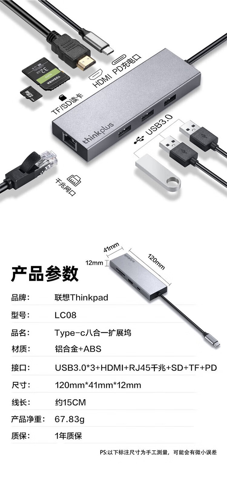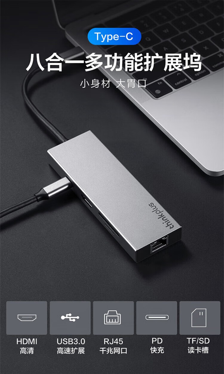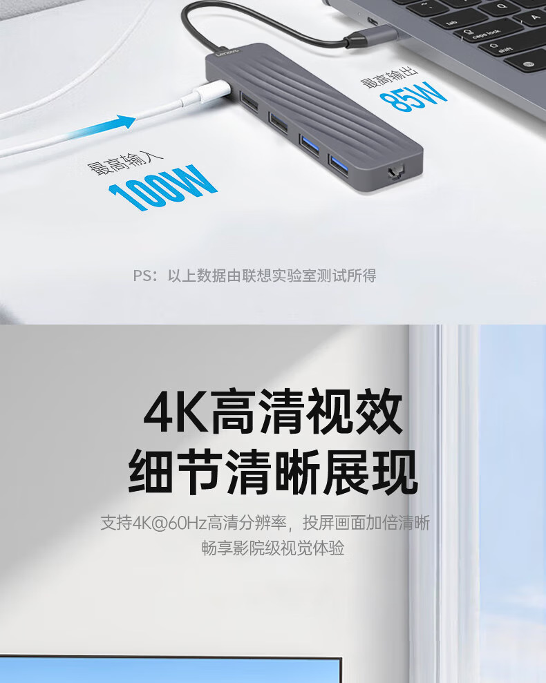 Lenovo LX0801Type-C 도킹 스테이션 분배기 HDMI 어댑터 RJ45 기가비트 네트워크 포트 PD 고속 충전에 적합스토어 가기