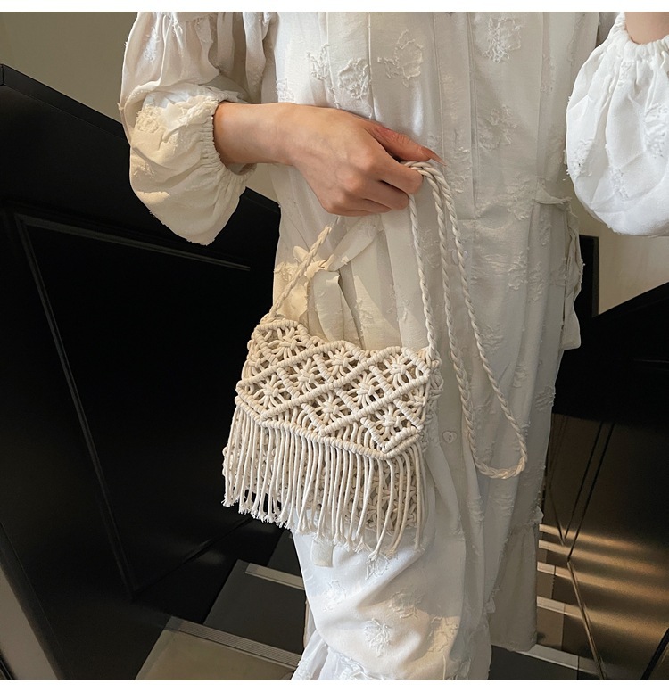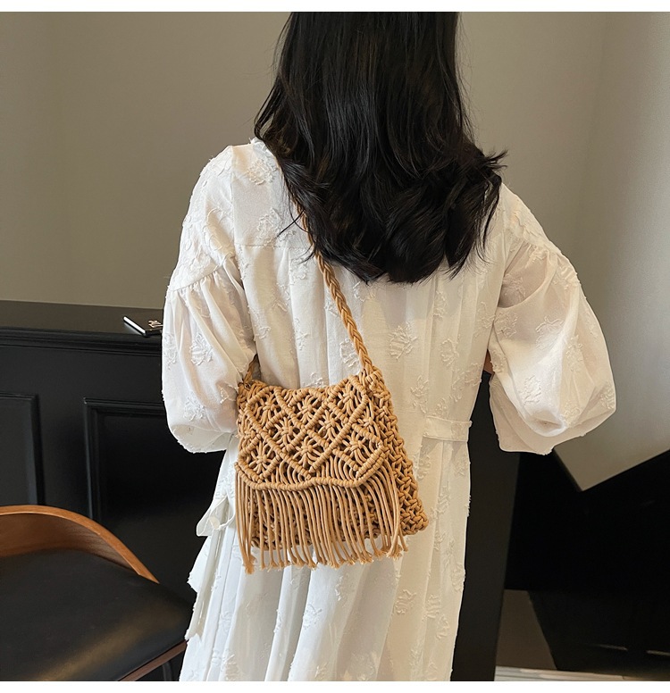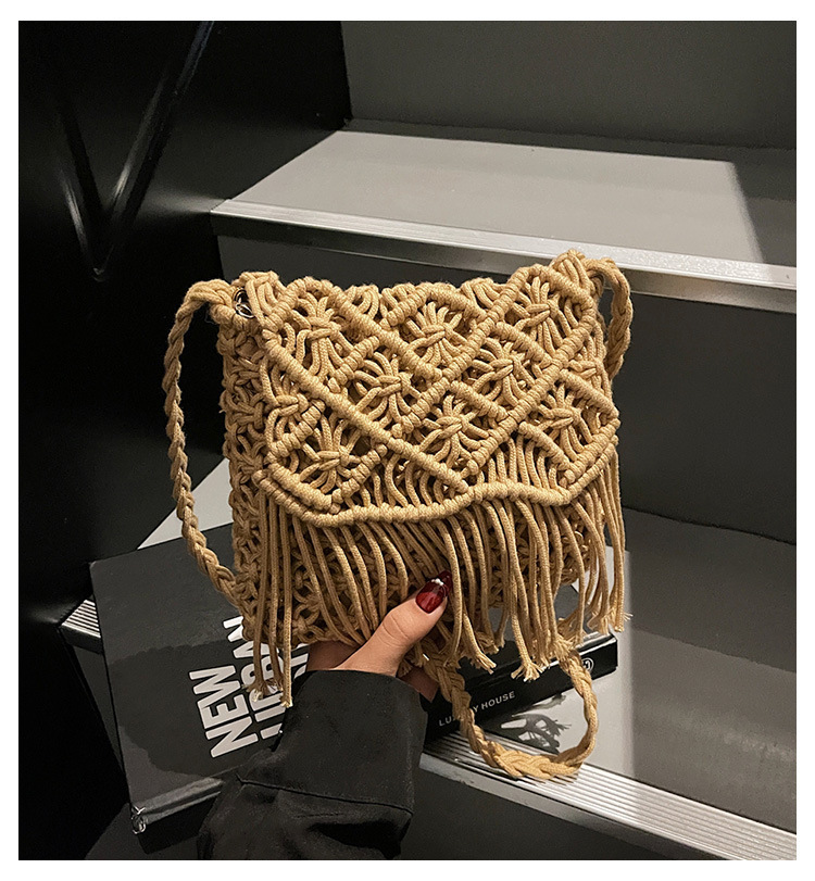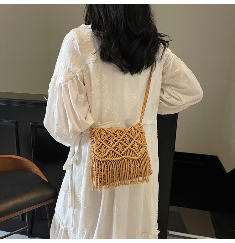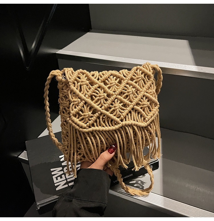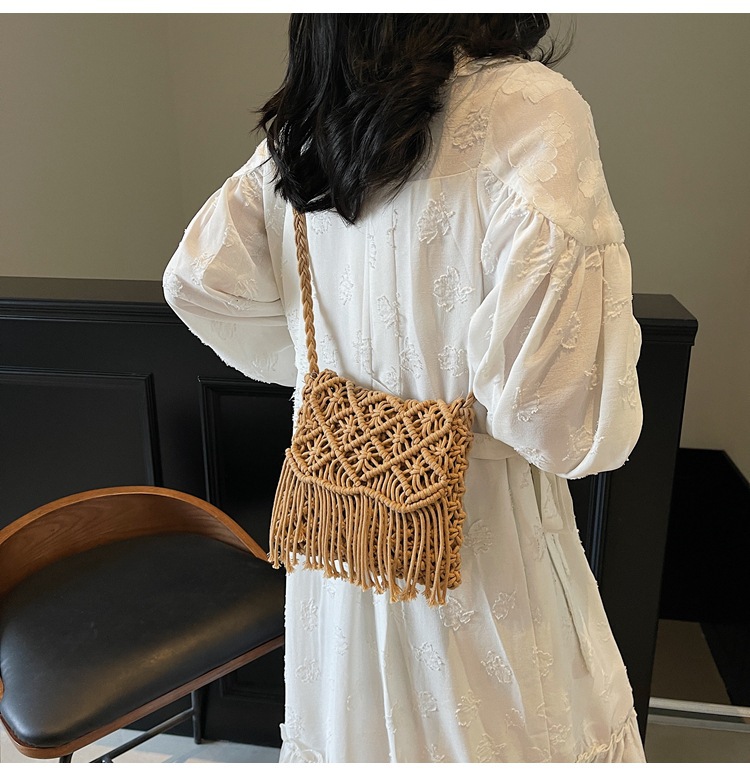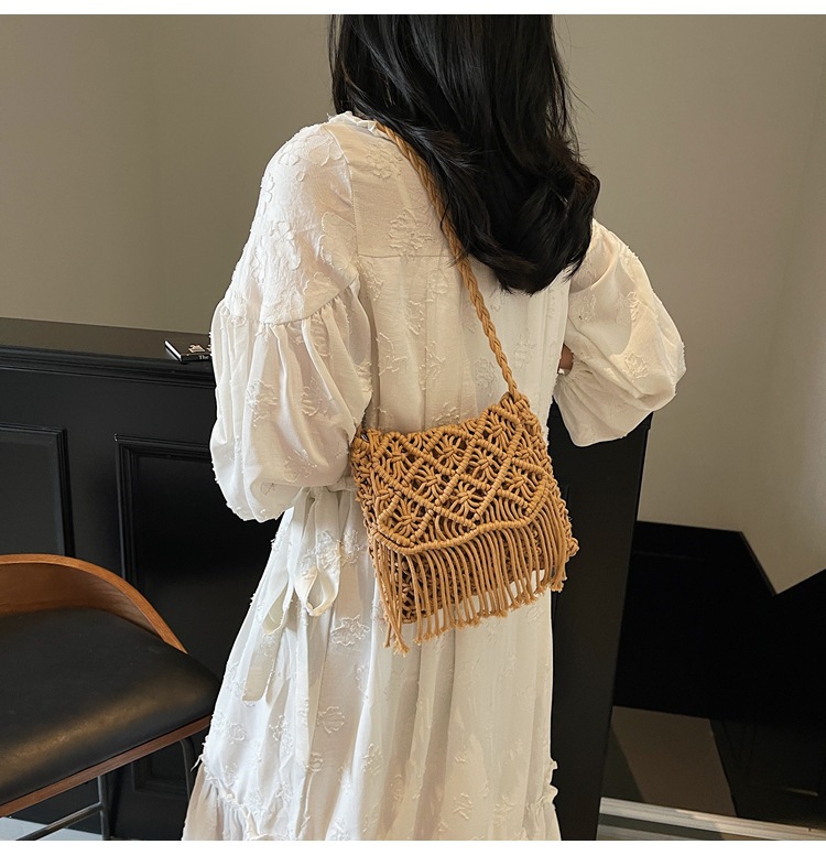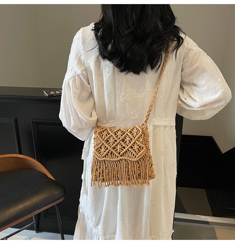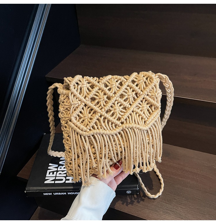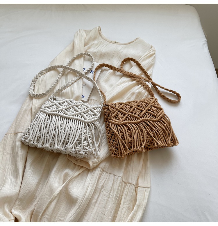 해변 휴가 해변 어깨 크로스 바디 백 보헤미안 술 가방 여성 2025 새로운 민족 스타일 짠 가방스토어 가기