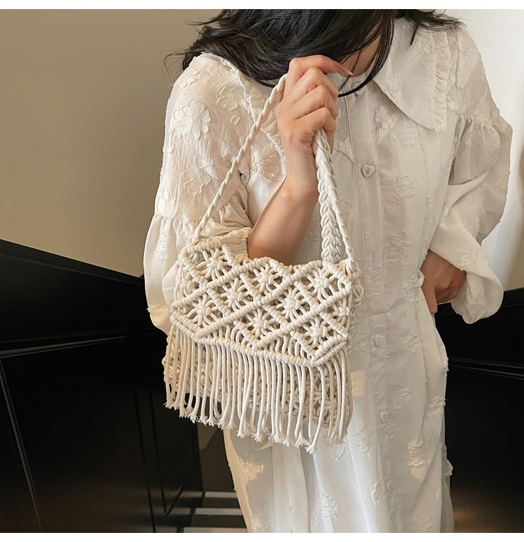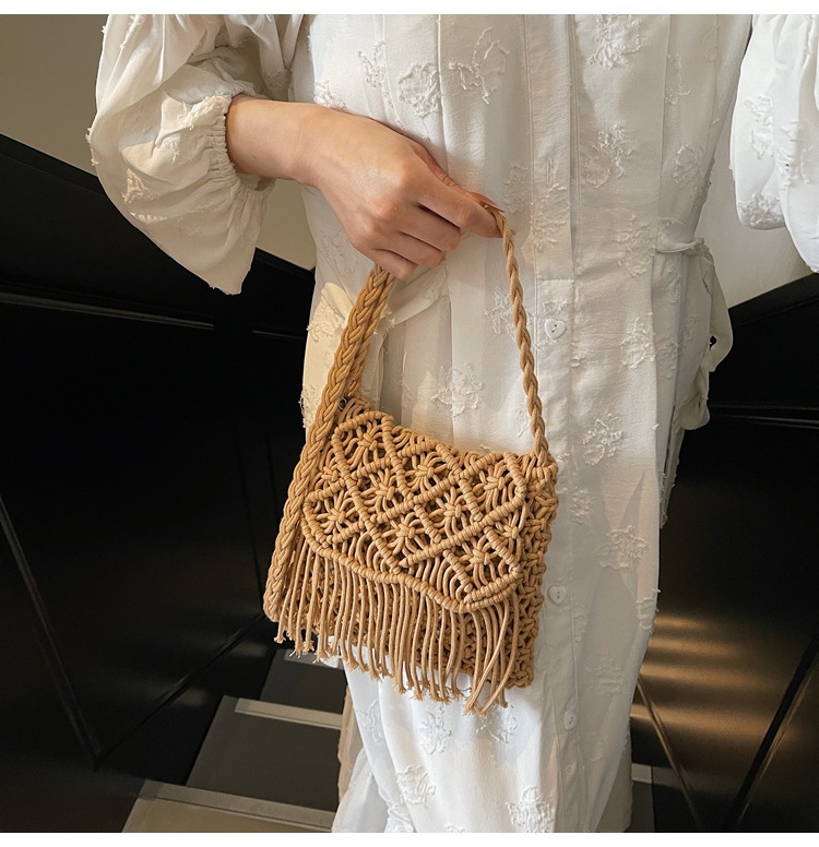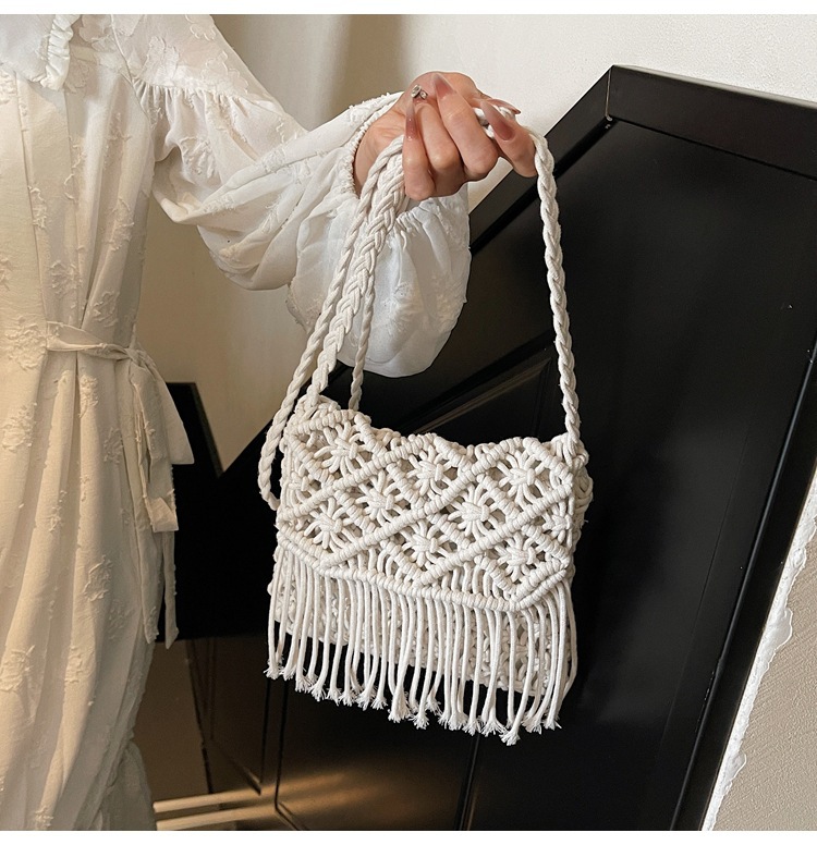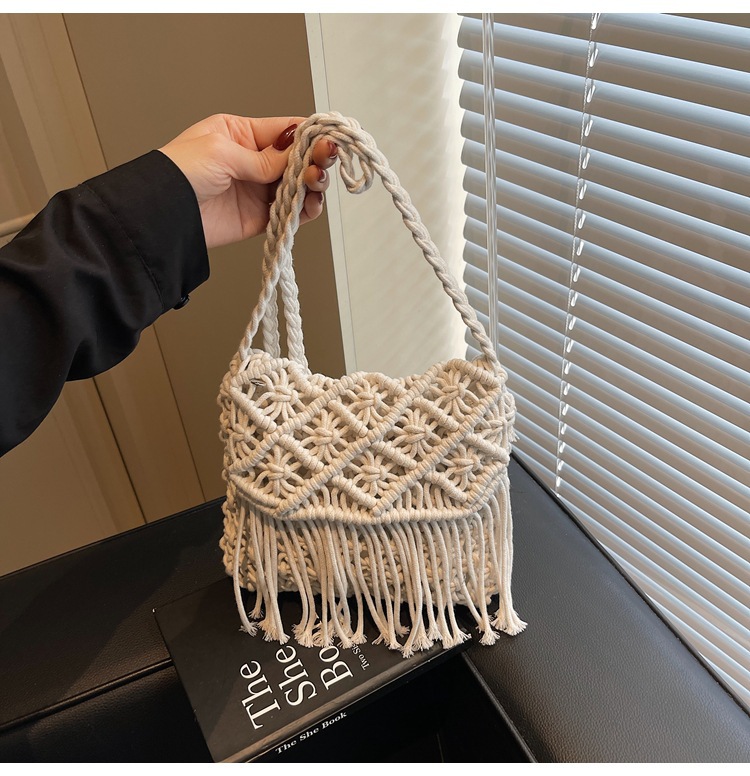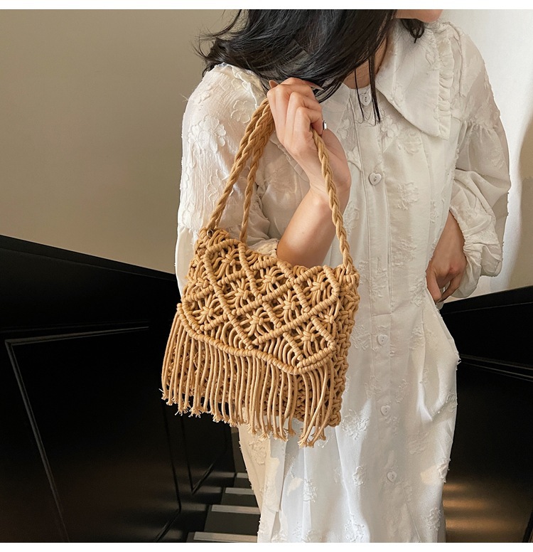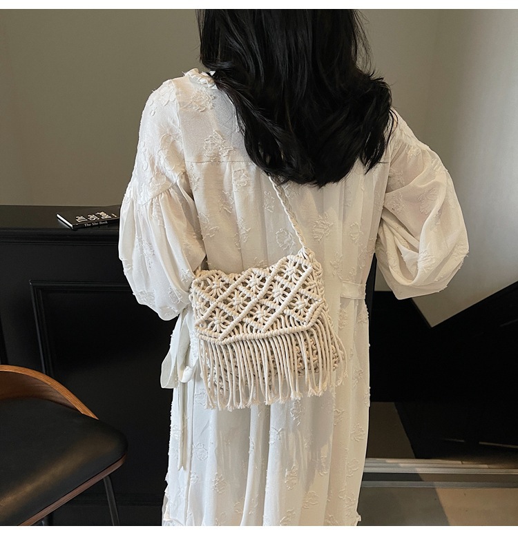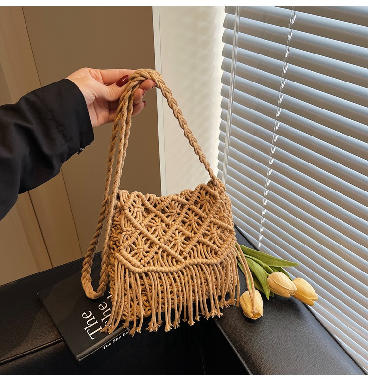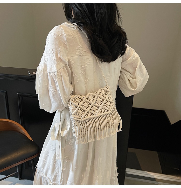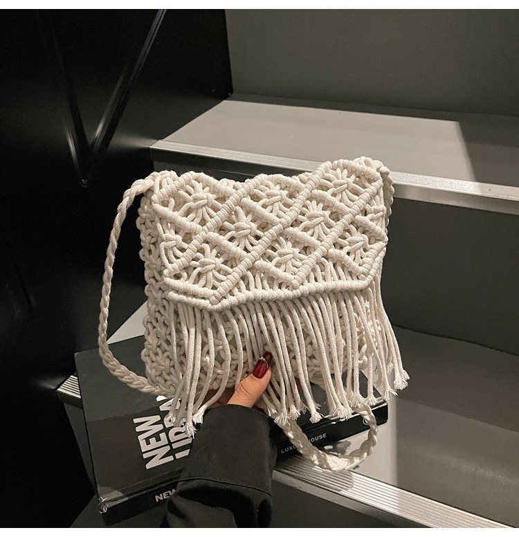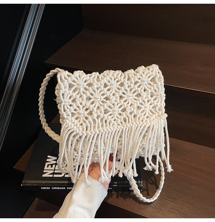 해변 휴가 해변 어깨 크로스 바디 백 보헤미안 술 가방 여성 2025 새로운 민족 스타일 짠 가방스토어 가기