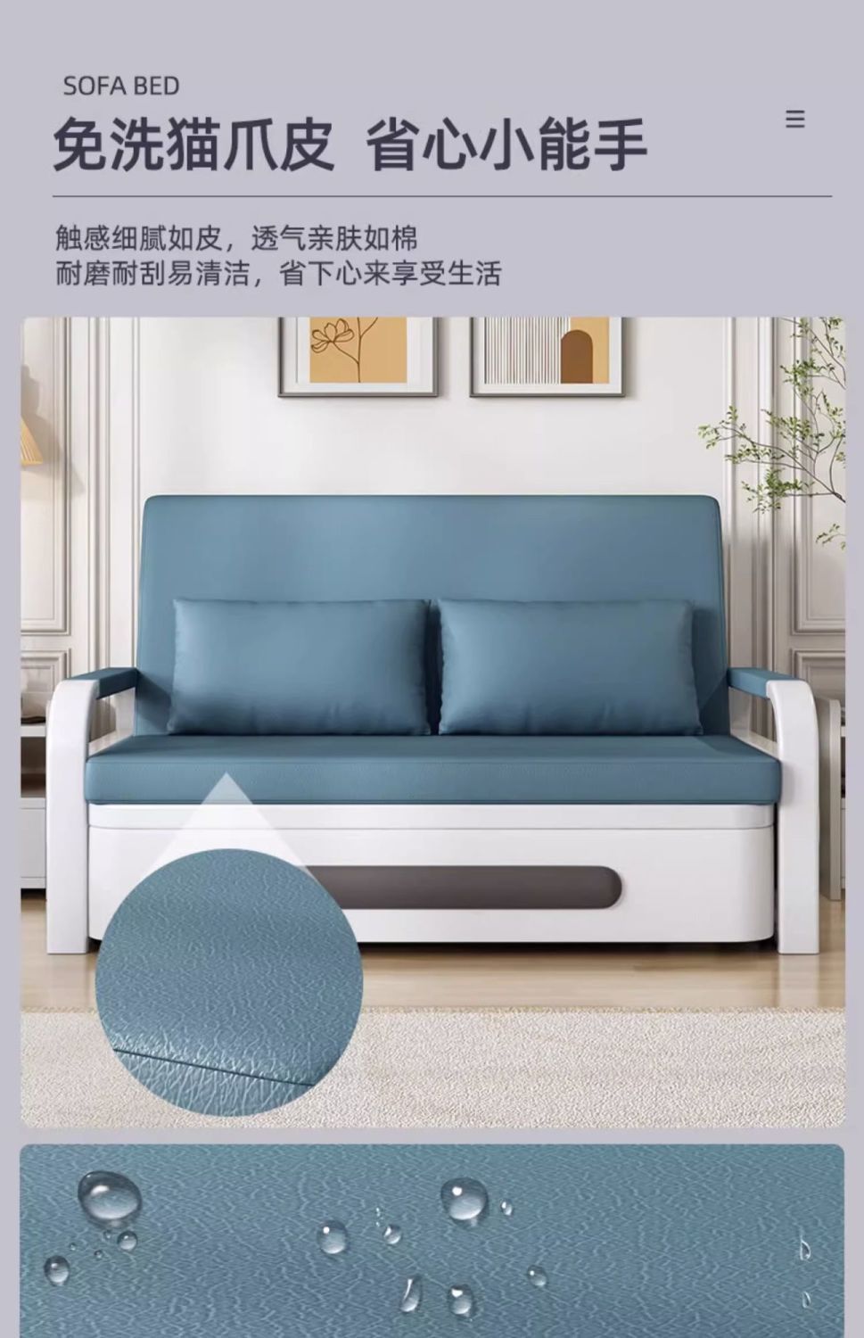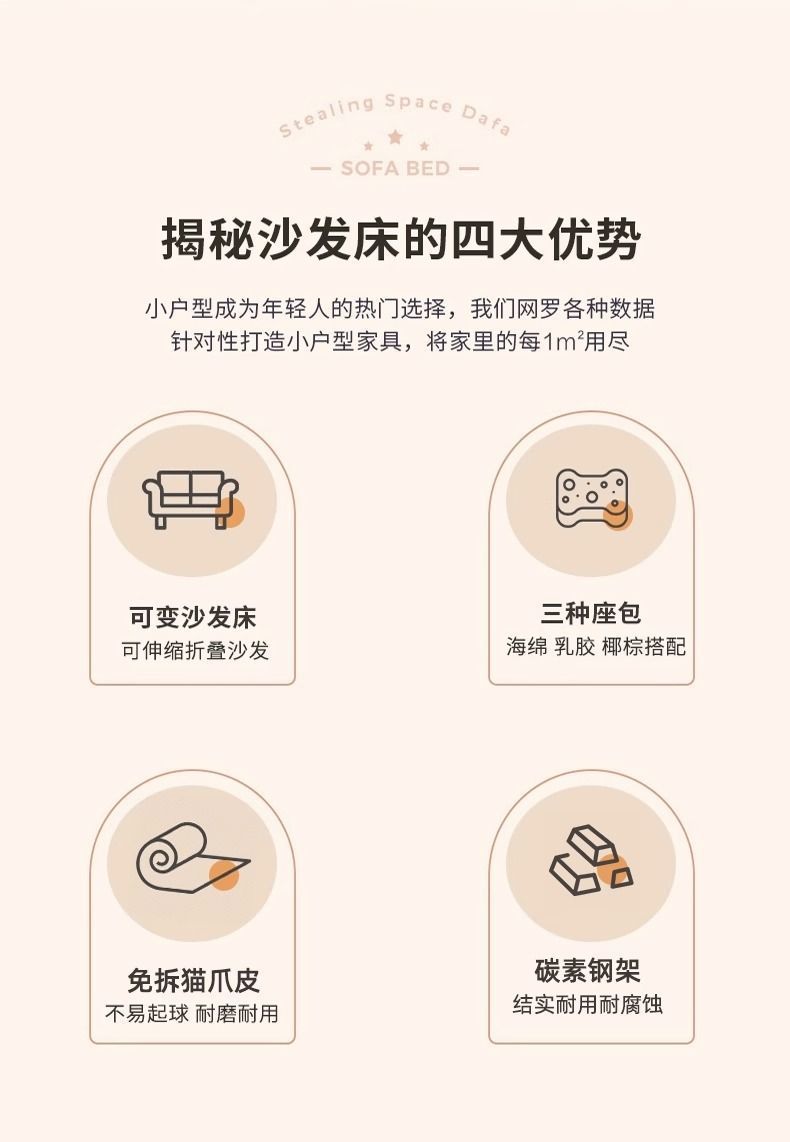 소파 베드 일체형 이중 목적 텔레스코픽 푸시풀 다기능 고양이 발톱 천 침대 방수 및 방오 접이식 소파 의자스토어 가기