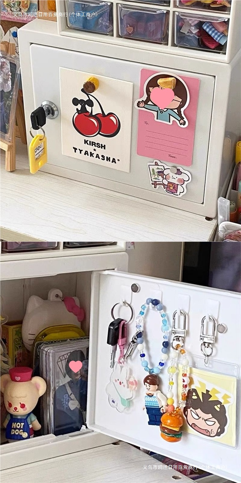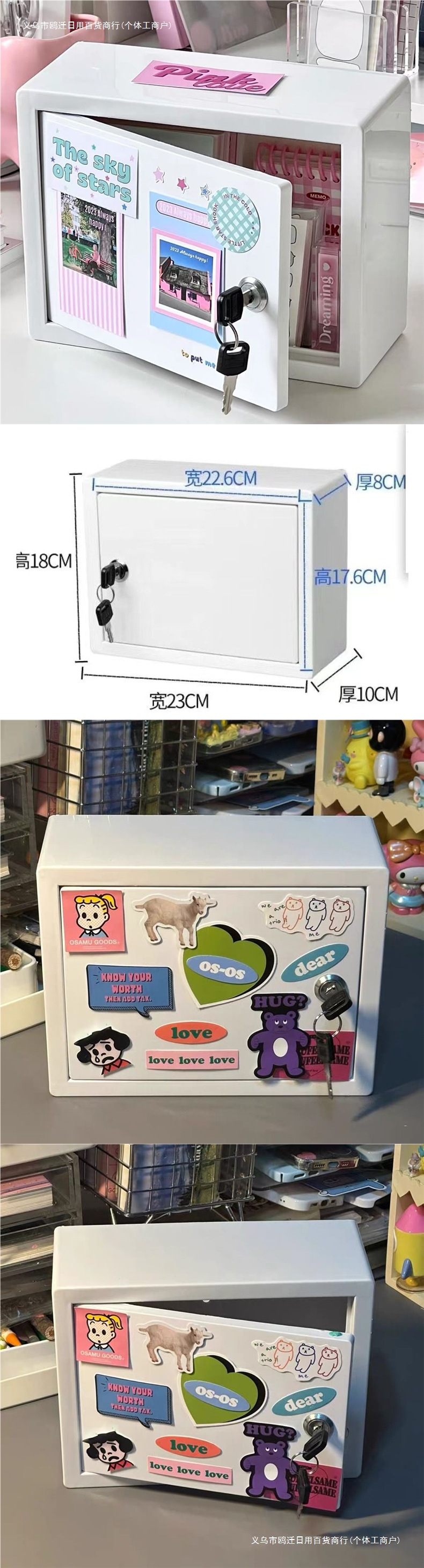 Xiaohongshu 같은 스타일의 순수한 흰색 데스크탑 보관함 복고풍 변형 귀여운 대용량 잡화 보관 캐비닛 학생스토어 가기