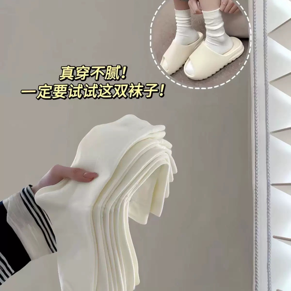 여성용 단색 파일 양말, 가을 겨울 면 양말, 중간 길이의 흰색 양말, 간단한 사계절 새 스타일 산후 양말, 배송스토어 가기