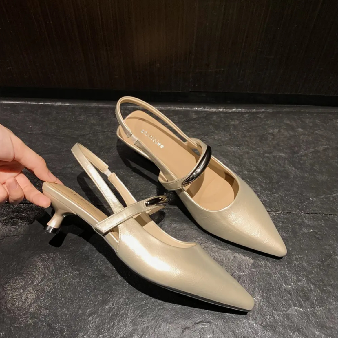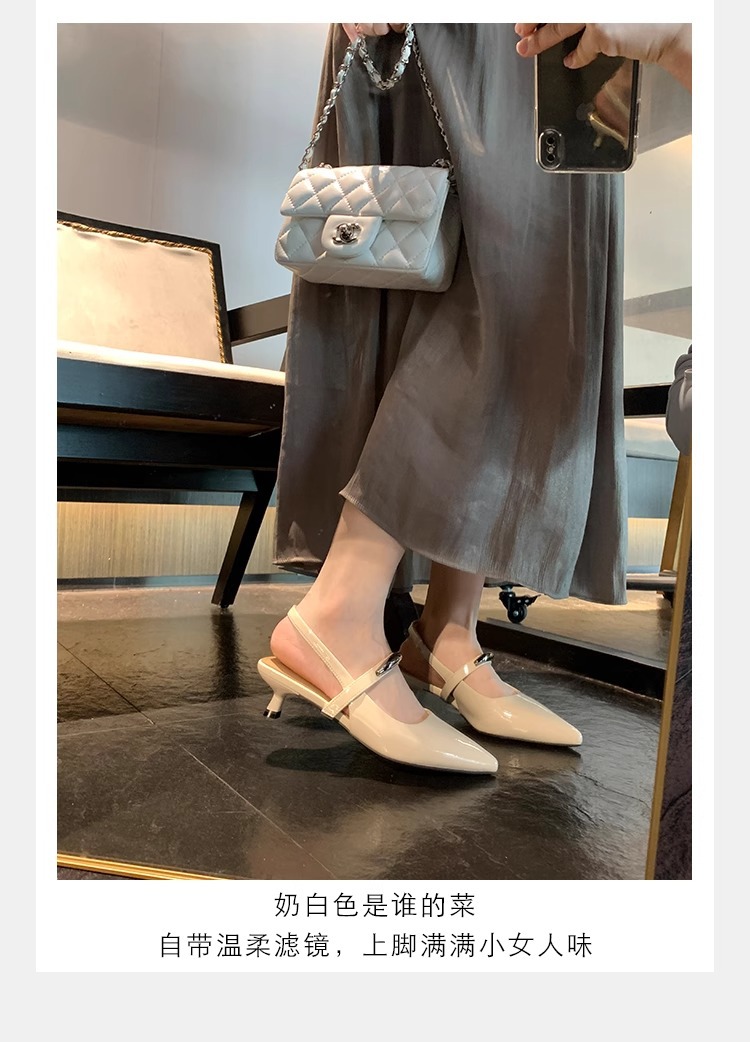 2025년 여름 포도엄마와 같은 스타일 키 5.5cm 증가 프렌치 포인티드 토 캐ット힐 샌들 여성 여름스토어 가기