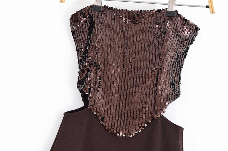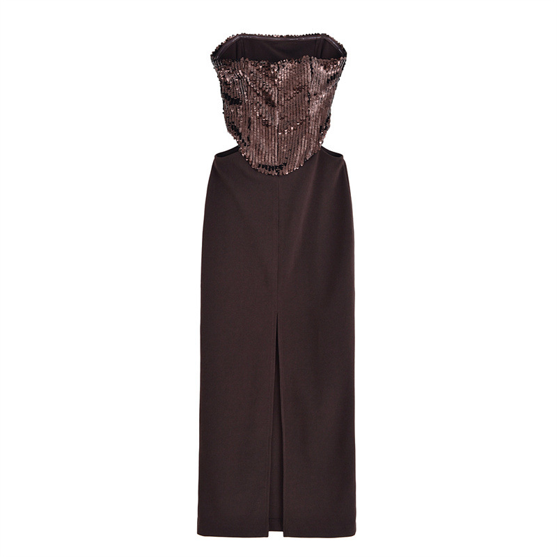 2025 새로운 여름 여성 유럽과 미국 스타일의 오픈 디자인 스팽글 스플 라이스 튜브 탑 드레스 507002