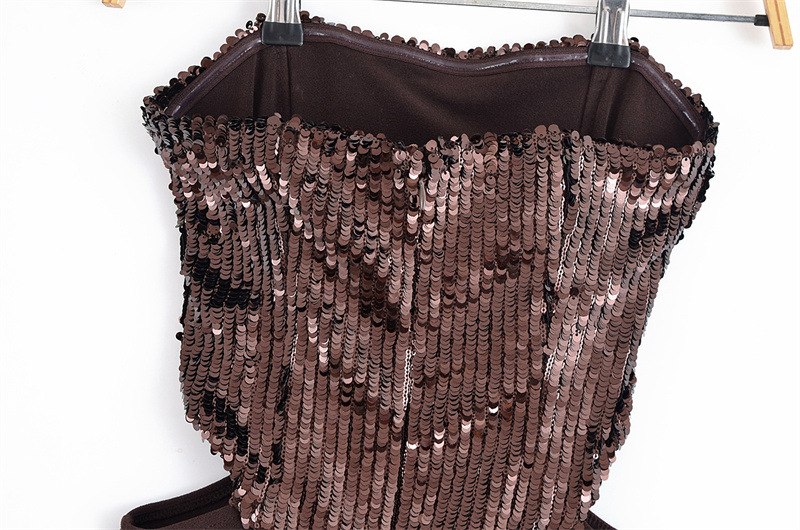 2025 새로운 여름 여성 유럽과 미국 스타일의 오픈 디자인 스팽글 스플 라이스 튜브 탑 드레스 507002스토어 가기