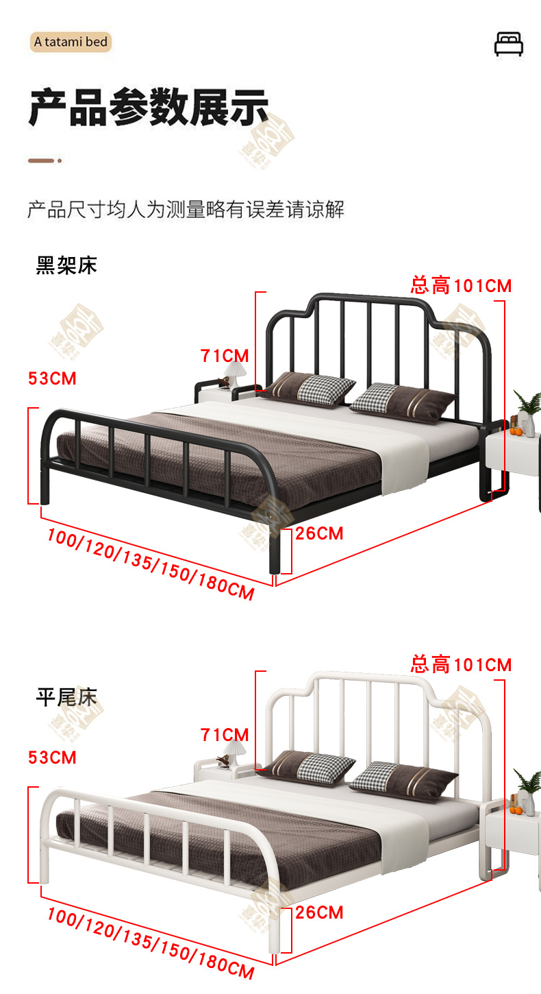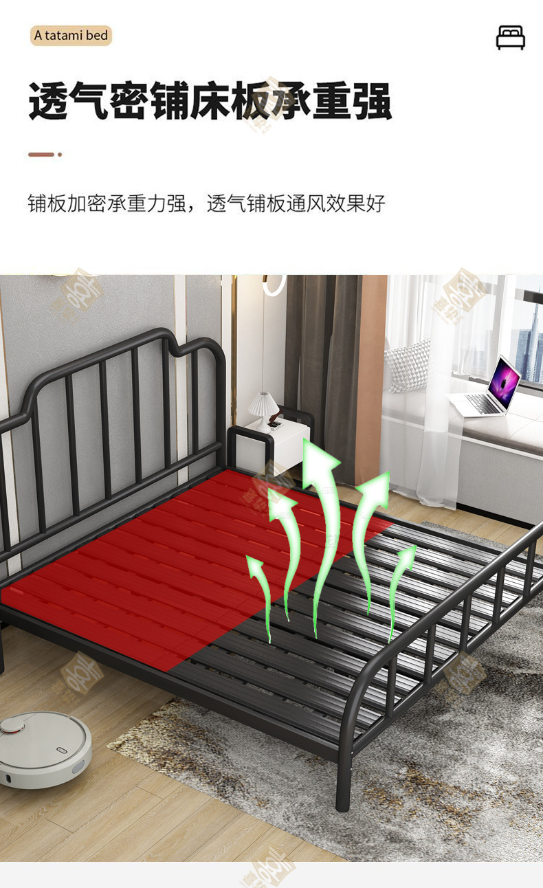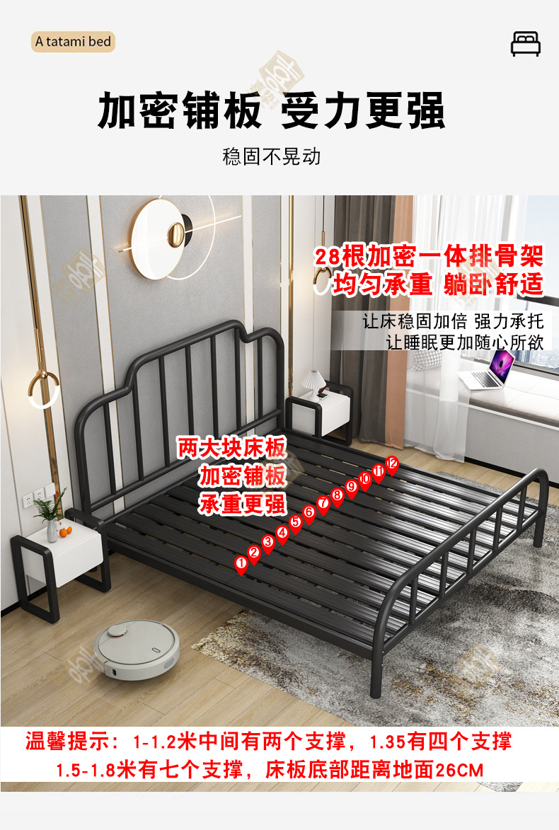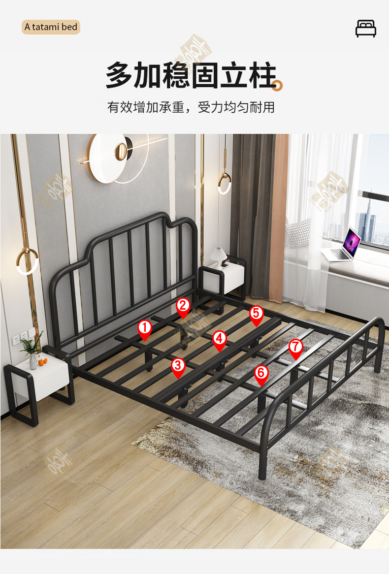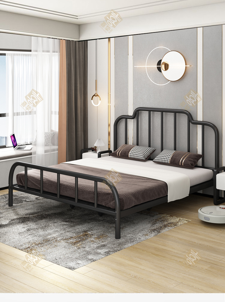 Xizhi 유럽 스타일 철 침대 1.8m 강화 및 두꺼운 더블 침대 1m 가정용 침대 스테인레스 스틸 임대 주택 철 프레임 침대스토어 가기