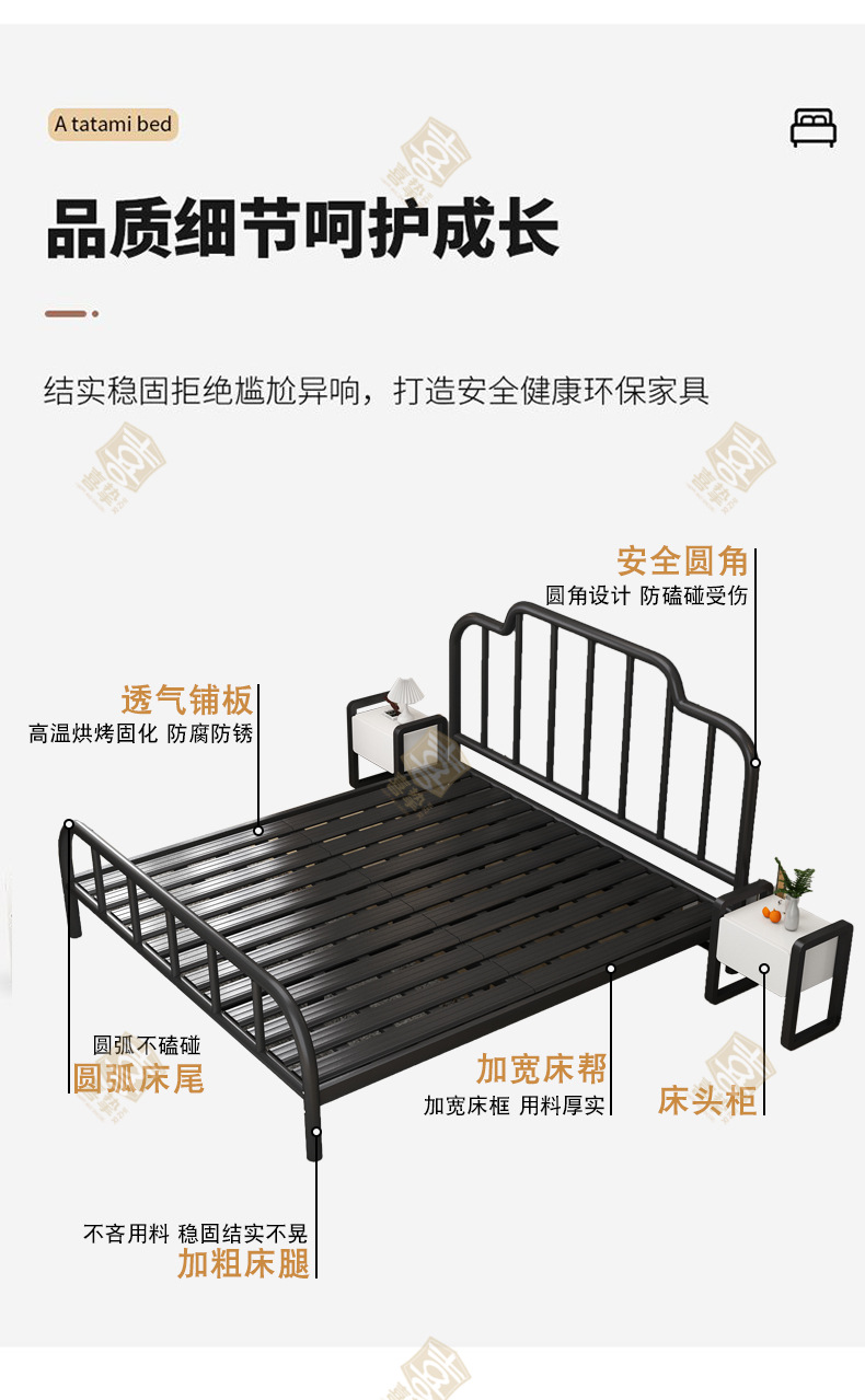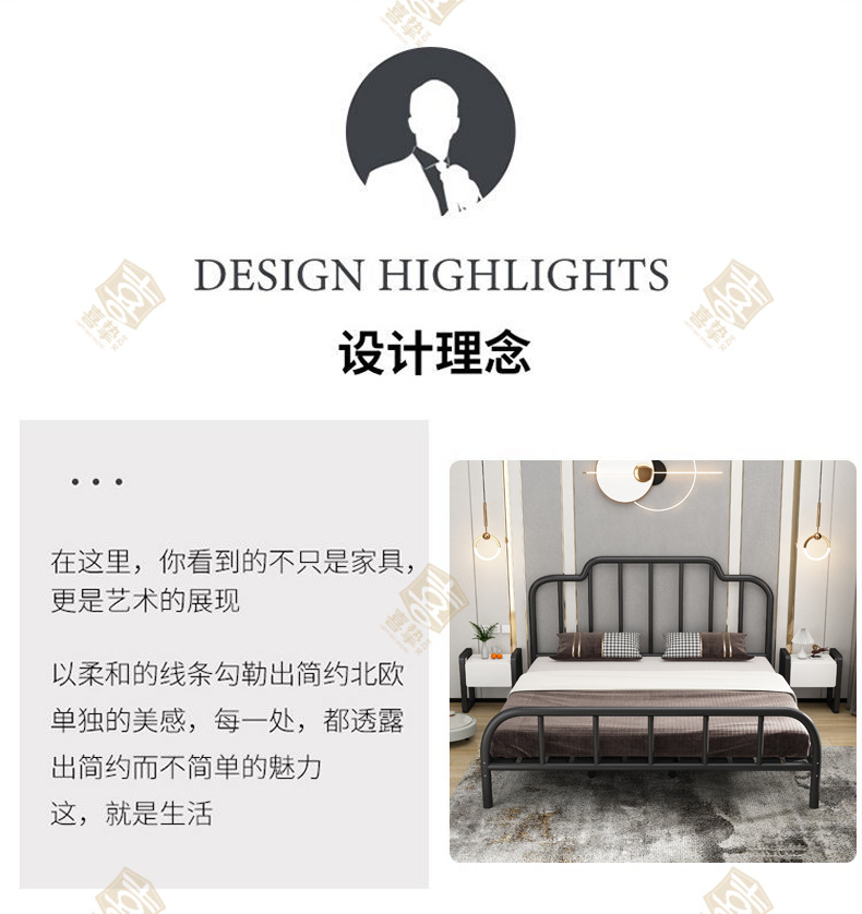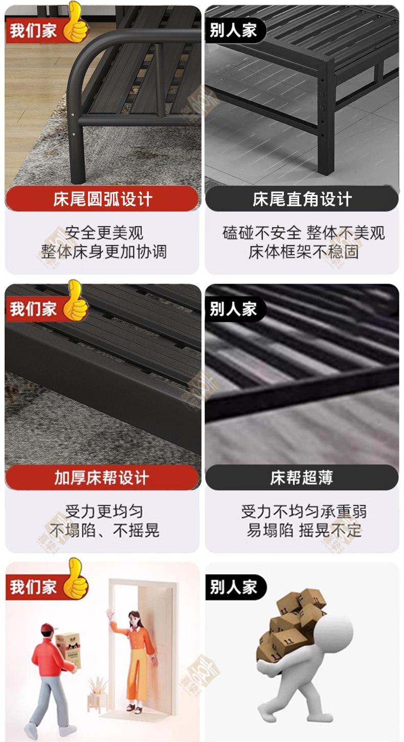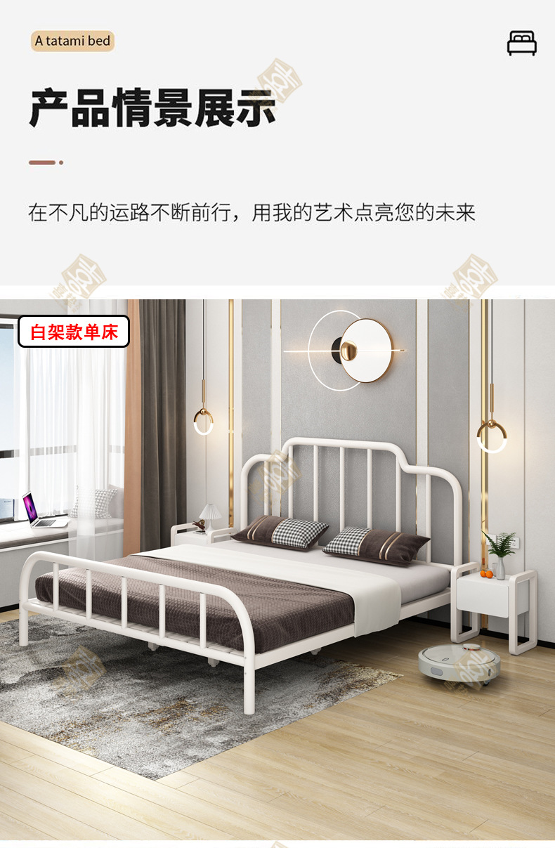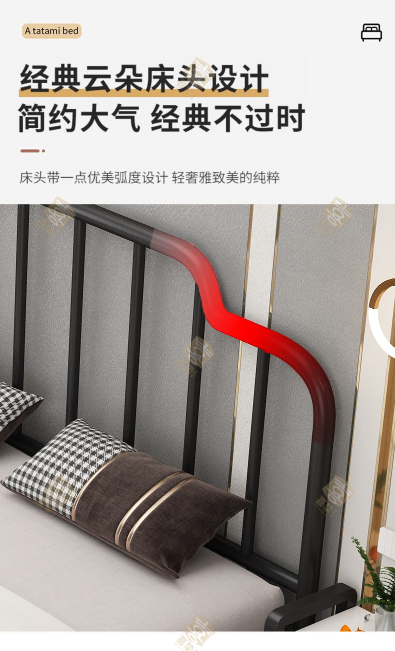 Xizhi 유럽 스타일 철 침대 1.8m 강화 및 두꺼운 더블 침대 1m 가정용 침대 스테인레스 스틸 임대 주택 철 프레임 침대스토어 가기