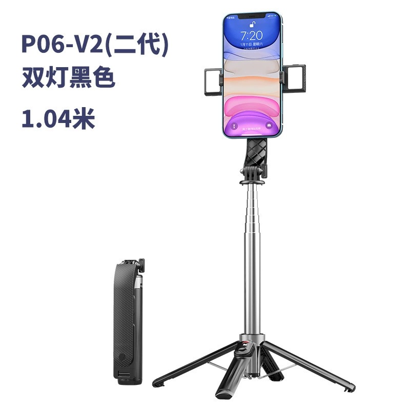 신제품 P07 2세대 블루투스 셀카봉, 흔들림 방지, 접이식 4각 브래킷, 셀카봉, 휴대용 라이브 방송 휴대폰 홀더