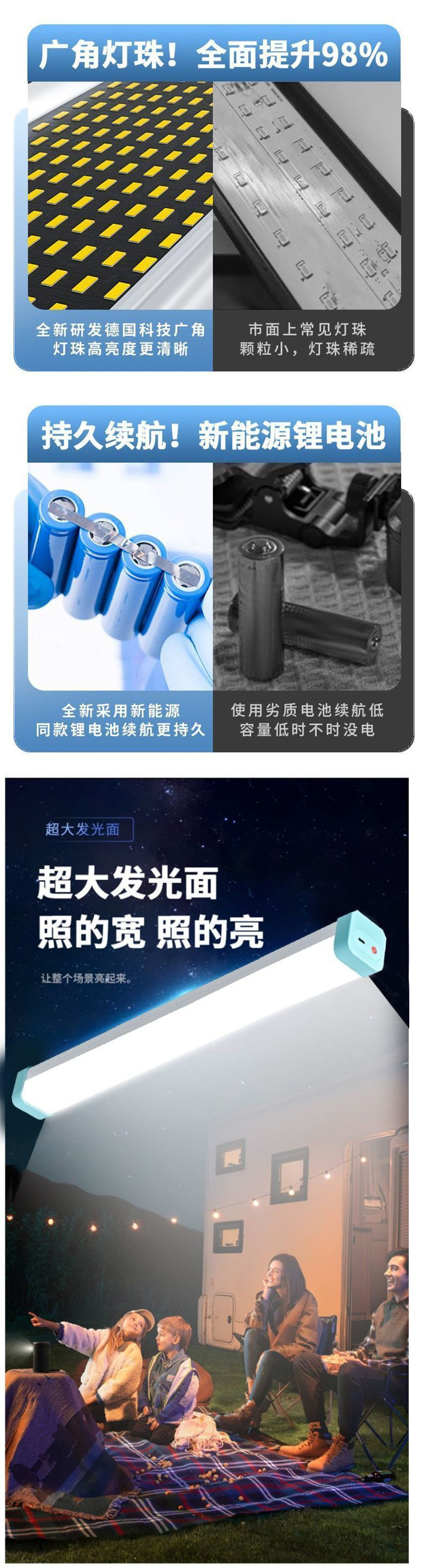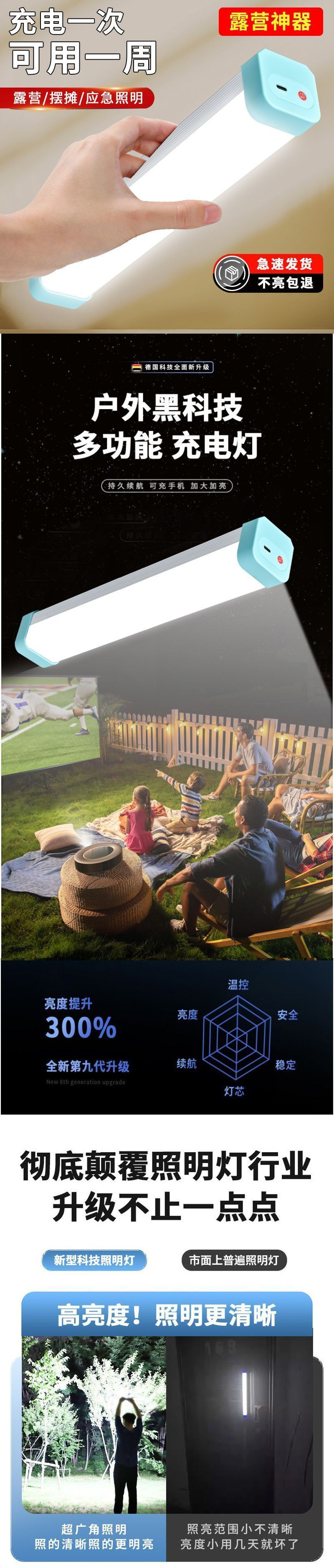 슈퍼 밝은 야시장 스톨 충전식 조명 야외 캠핑 l 텐트 라이트 다기능 LED 비상 램프
