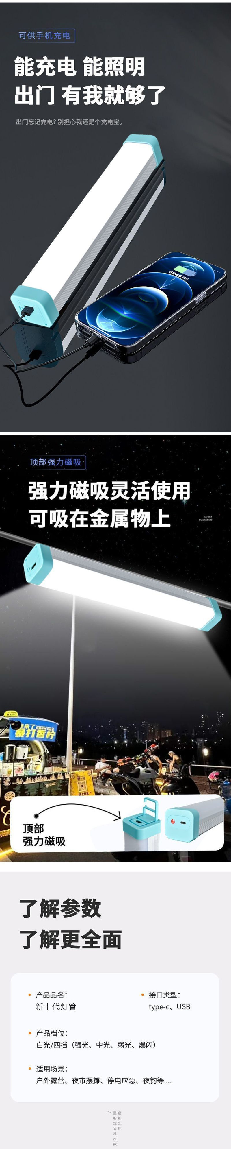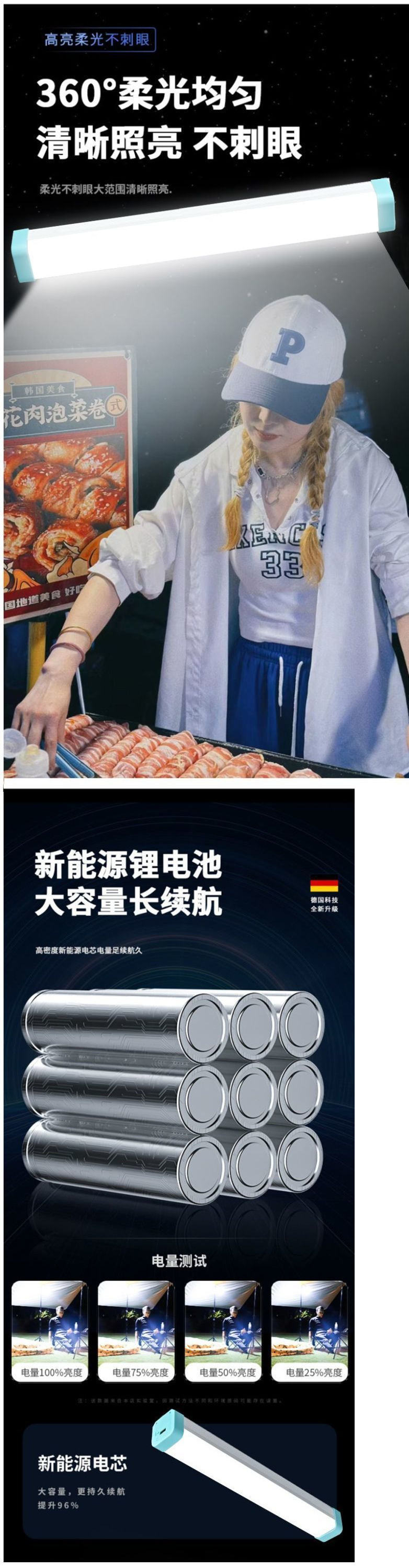슈퍼 밝은 야시장 스톨 충전식 조명 야외 캠핑 l 텐트 라이트 다기능 LED 비상 램프스토어 가기