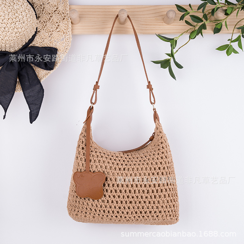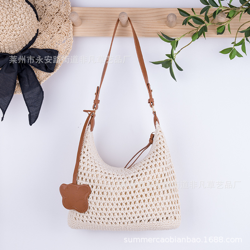 새로운 남풍 면사 짠 가방, 숄더 캐주얼 토트백, 대용량 밀짚 가방, 속이 빈 패셔너블한 여성용 비치백