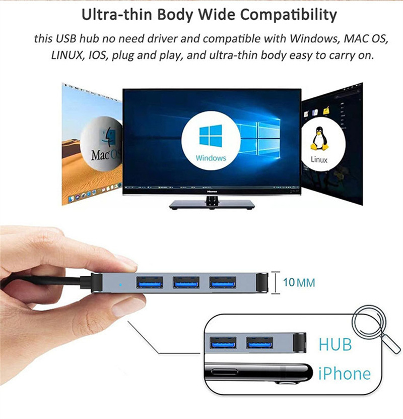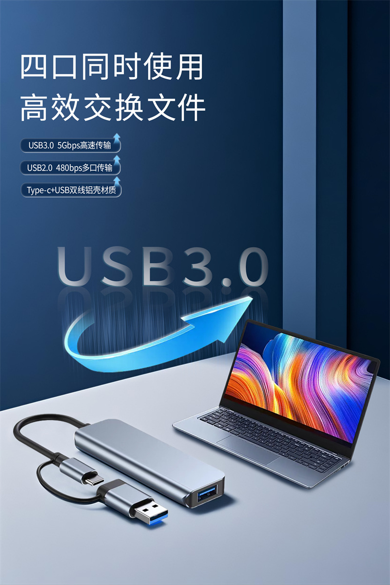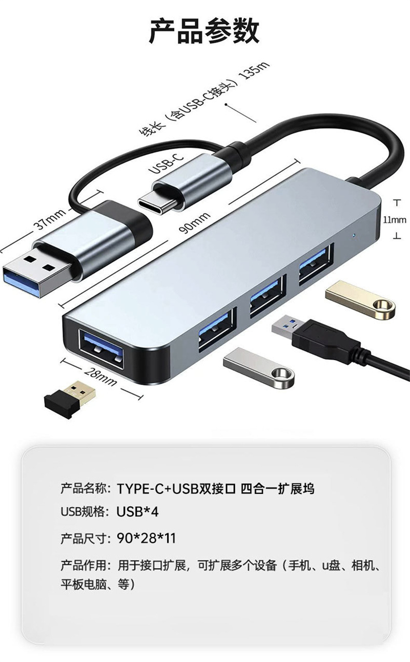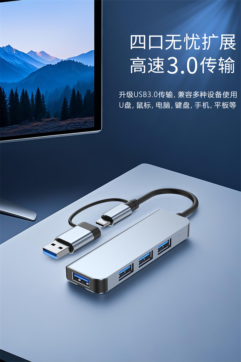 场景词:双头接口扩展坞、四合一HUB、hub集线器
