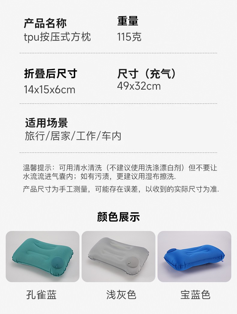 맞춤형 TPU 공기주입식 베개, 목베개, 야외 캠핑 낚시 텐트 자동차 베개, 낮잠베개, 여행베개