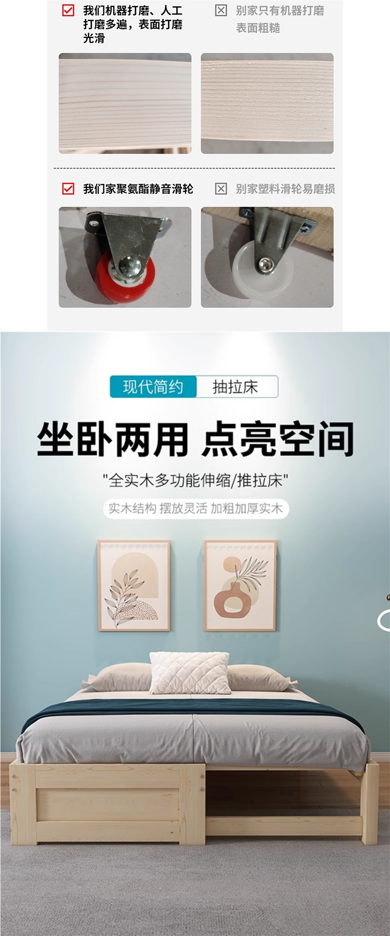 접이식 소파 베드, 이중 목적, 다기능, 소형 거실, 접이식 침대, 원목 접이식 침대, 풀아웃 침대 프레임