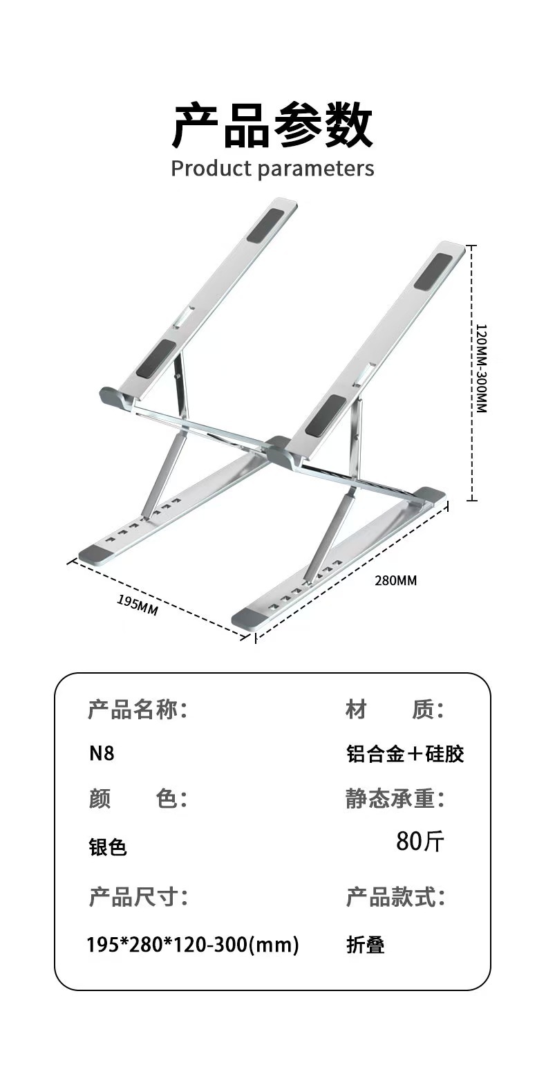 새로운 N8 알루미늄 합금 노트북 스탠드 냉각 브래킷 접이식 데스크탑 태블릿 컴퓨터 더블 레이어 스탠드