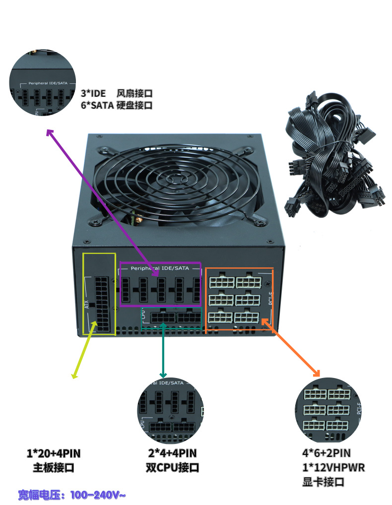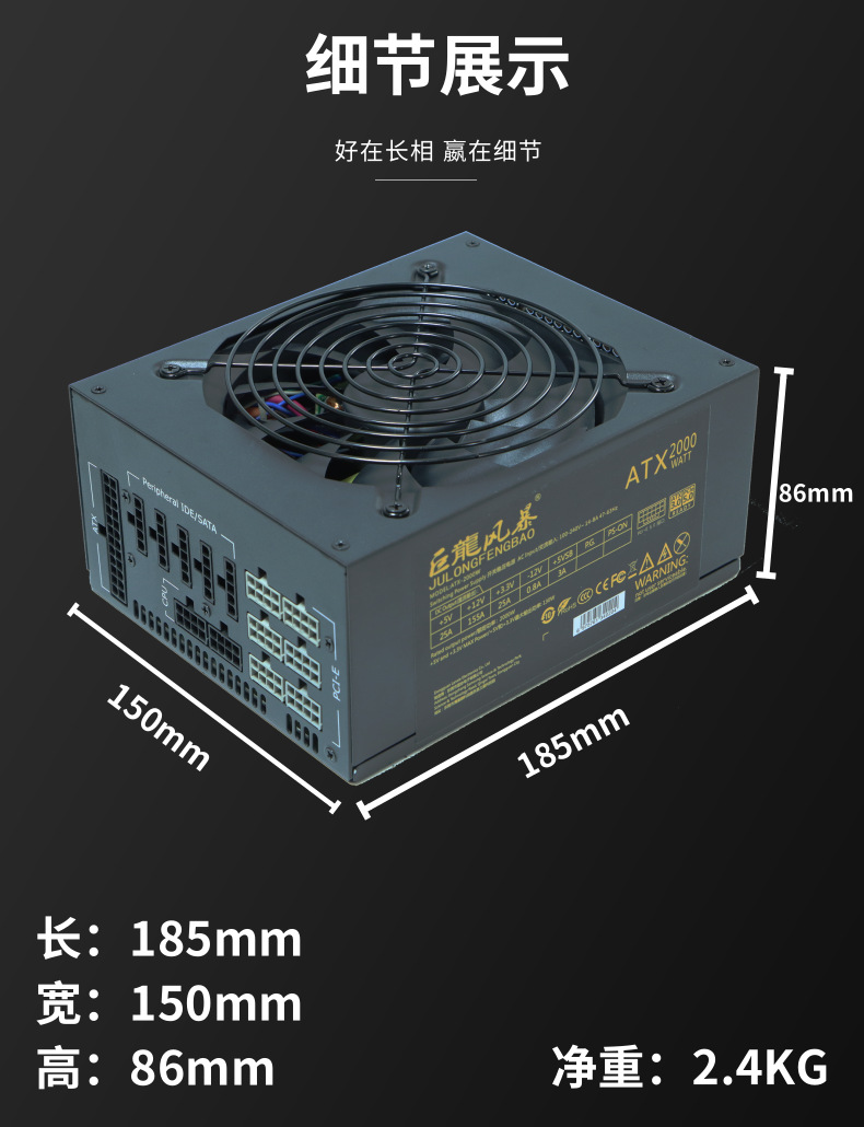 Julong Storm 정격 2000W ATX 호스트 풀 모듈 듀얼 CPU5.0 하이엔드 그래픽 카드 고급 컴퓨터 전원 공급 장치