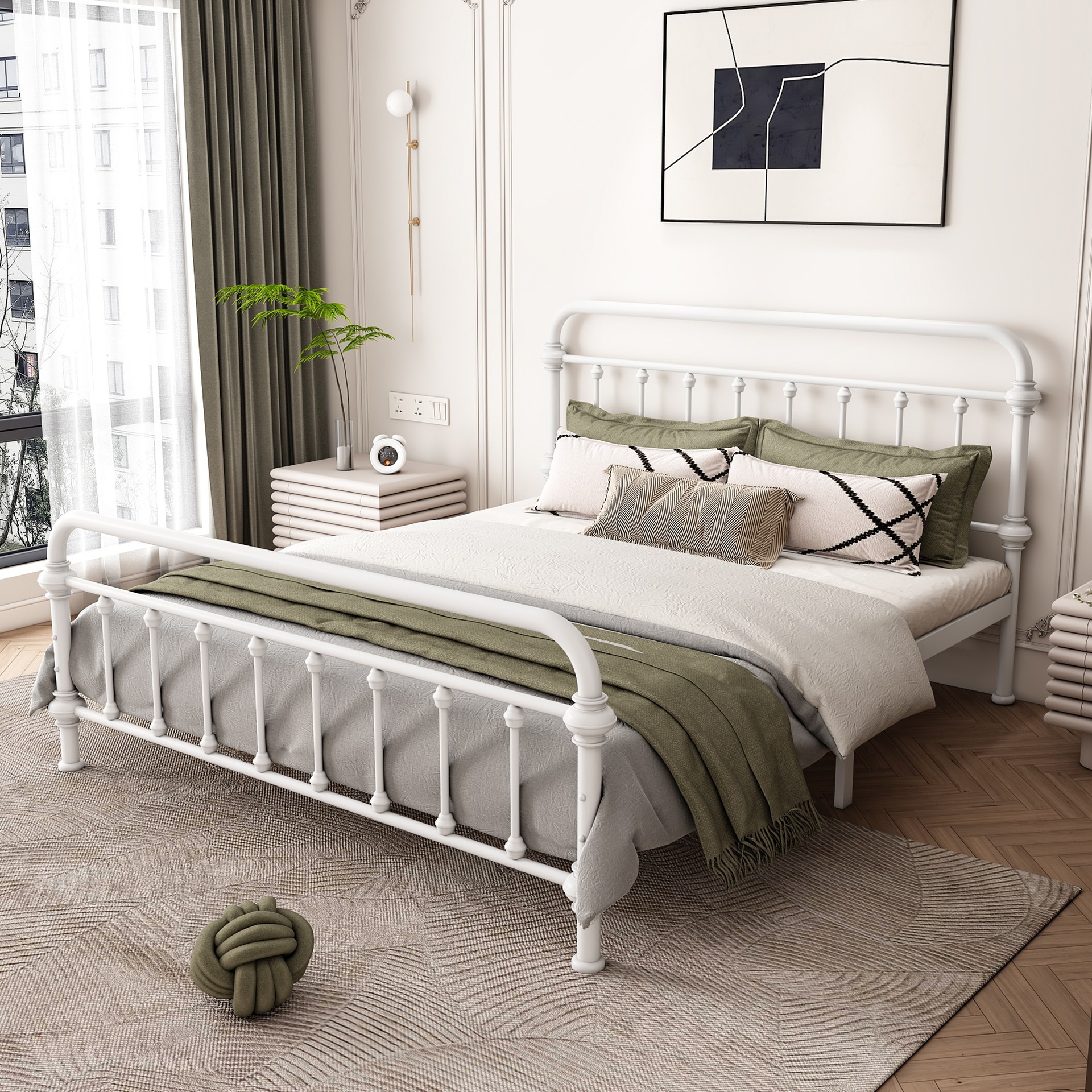 • 패키지 설치 [저렴한 잔액] 화이트 침대 + 20cm 독립 스프링 매트리스 (마이크로소프트)