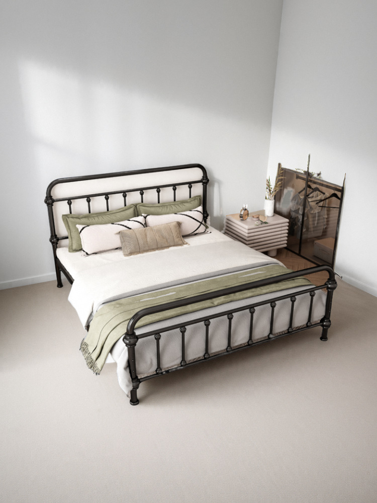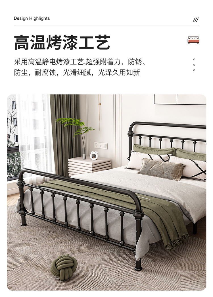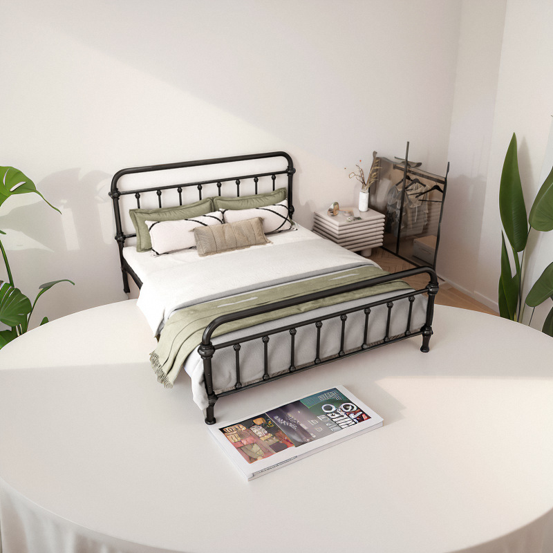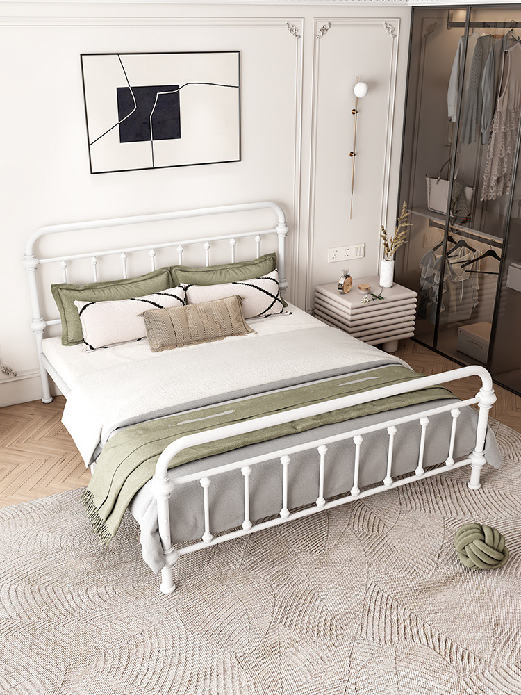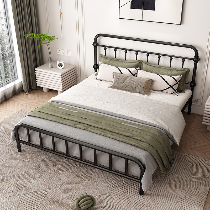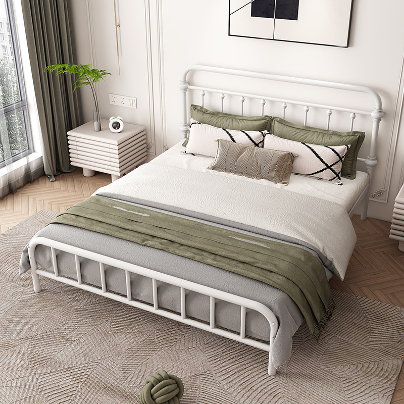 유럽식 철제 침대 심플 모던 북유럽 철제 프레임 침대 1.5 싱글 1.8 더블 침대 강화 및 두꺼운 가정용 철제 침대