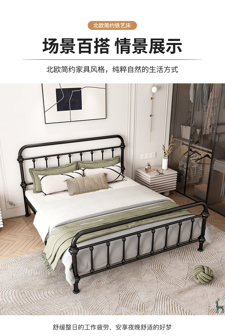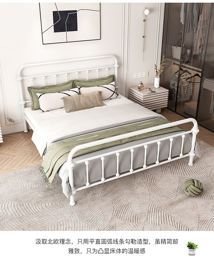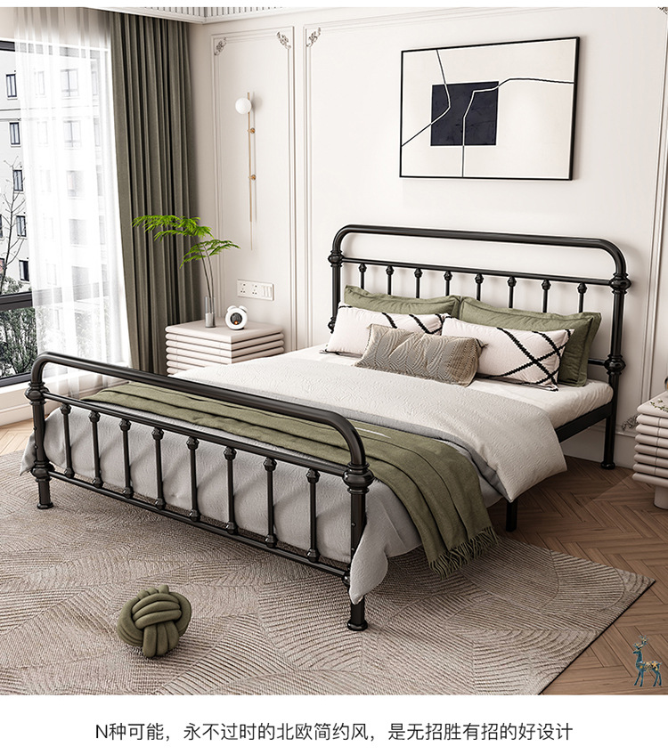 유럽식 철제 침대 심플 모던 북유럽 철제 프레임 침대 1.5 싱글 1.8 더블 침대 강화 및 두꺼운 가정용 철제 침대스토어 가기