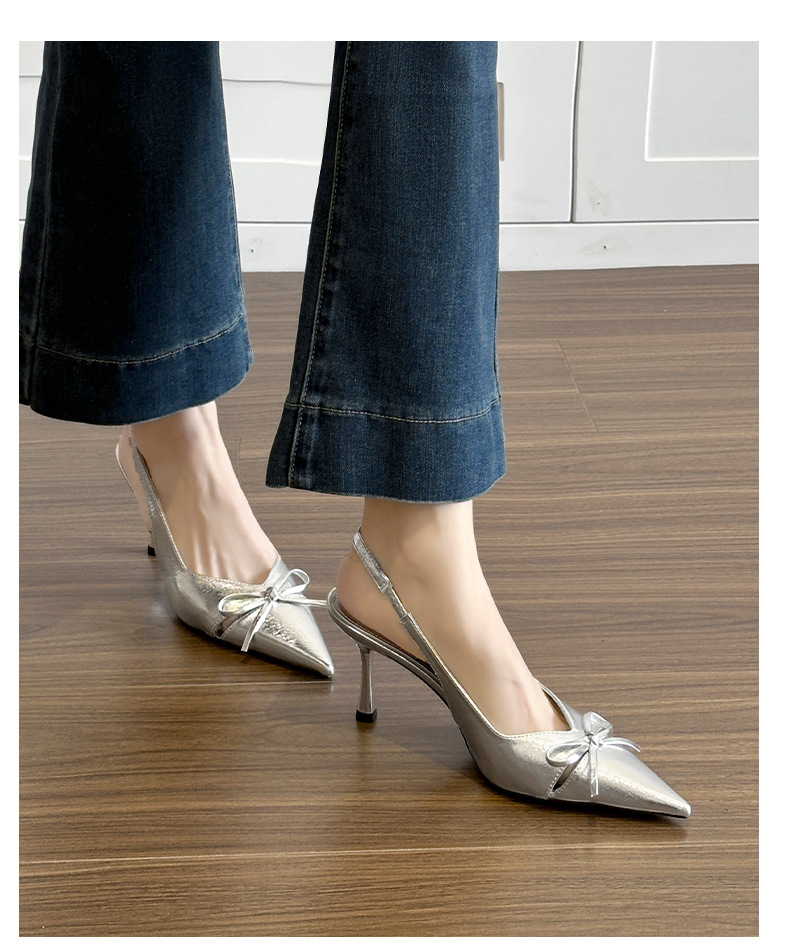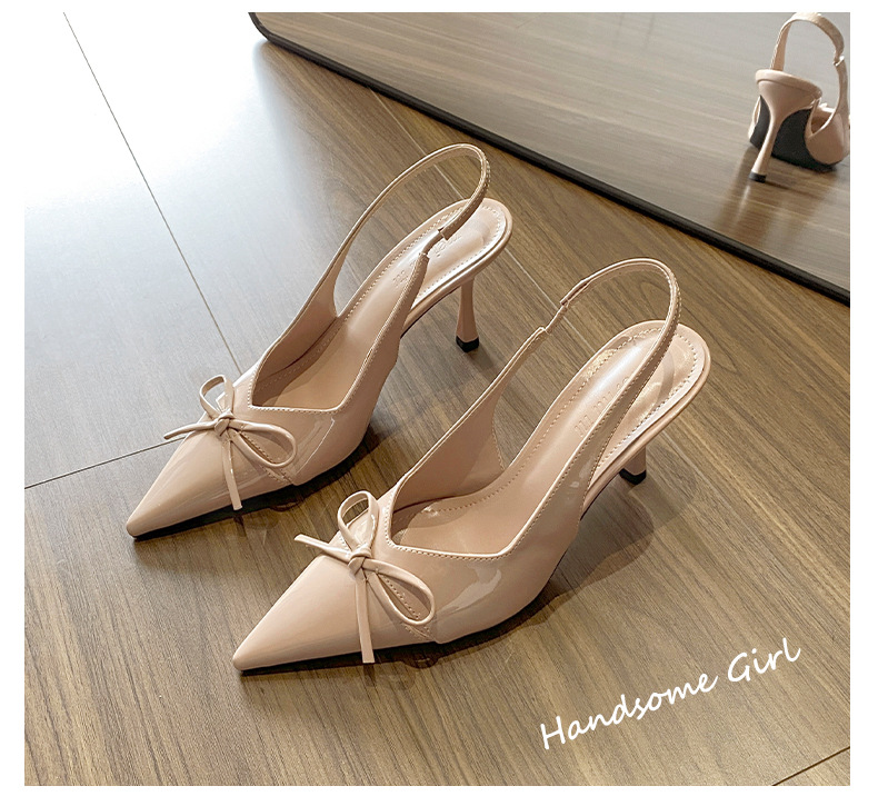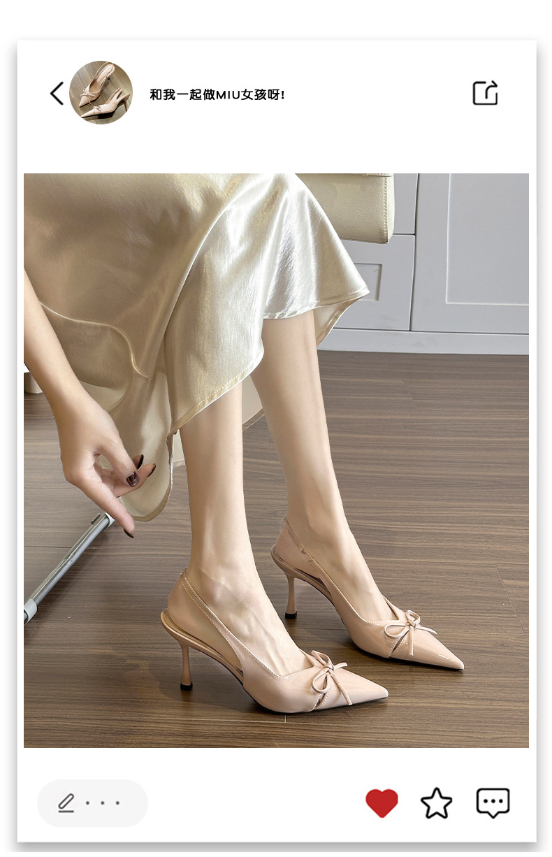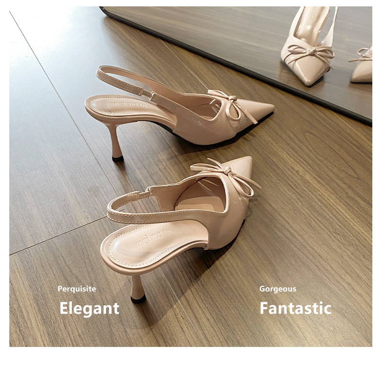 누드 하이힐 ~ 2025 봄 여름 새로운 틈새 디자인 보우 할로우 요정 프렌치 하이힐 여성용스토어 가기