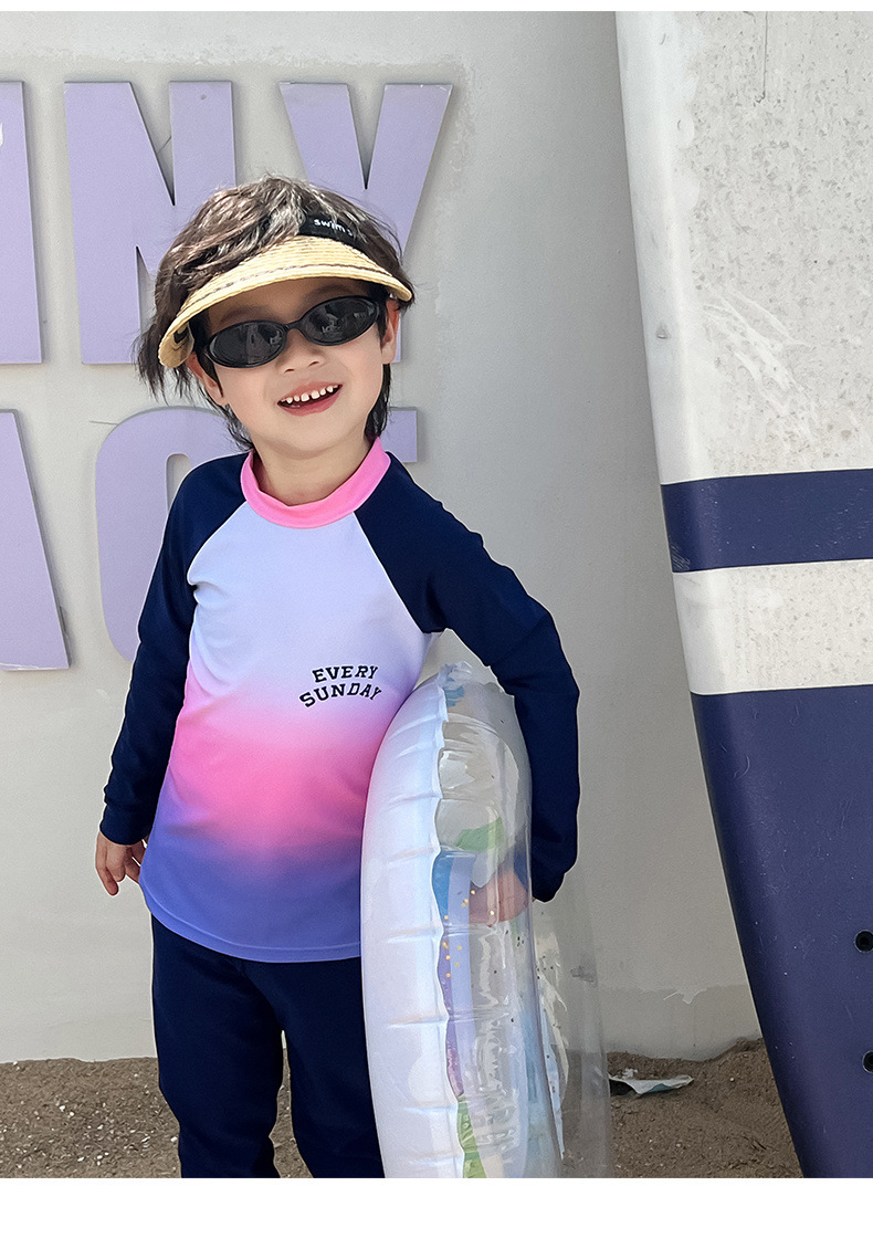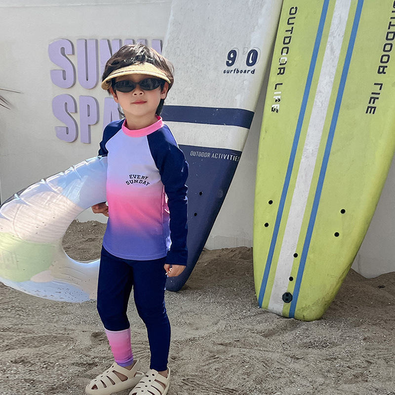 아동용 수영복 새로운 스타일 스플릿 소년 긴팔 아기 바지 속건성 자외선 차단 소년 잠수복 중대형 아동복스토어 가기