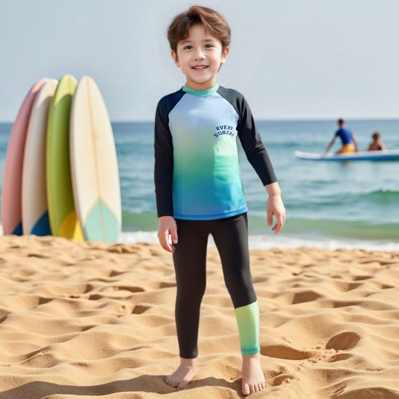 아동용 수영복 새로운 스타일 스플릿 소년 긴팔 아기 바지 속건성 자외선 차단 소년 잠수복 중대형 아동복
