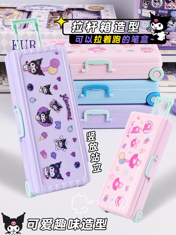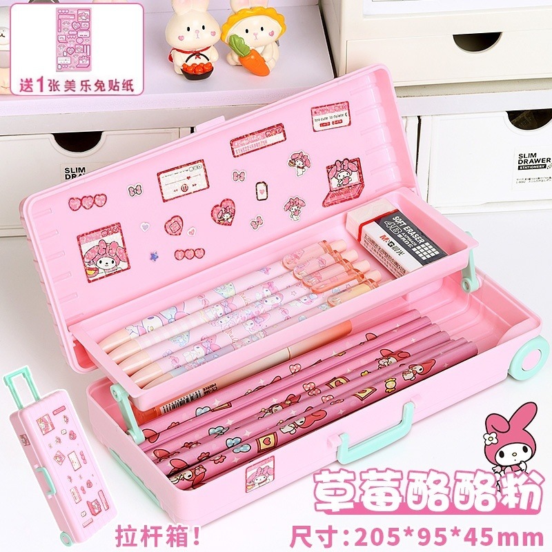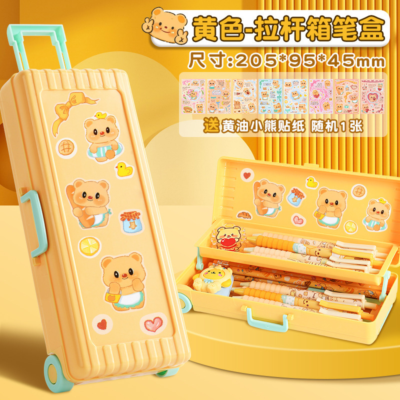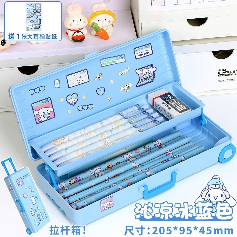 고급스러운 어린이 푸시-풀 연필 상자 도매 다기능 더블 레이어 플라스틱 연필 가방 학생 대용량 만화 문구 상자스토어 가기