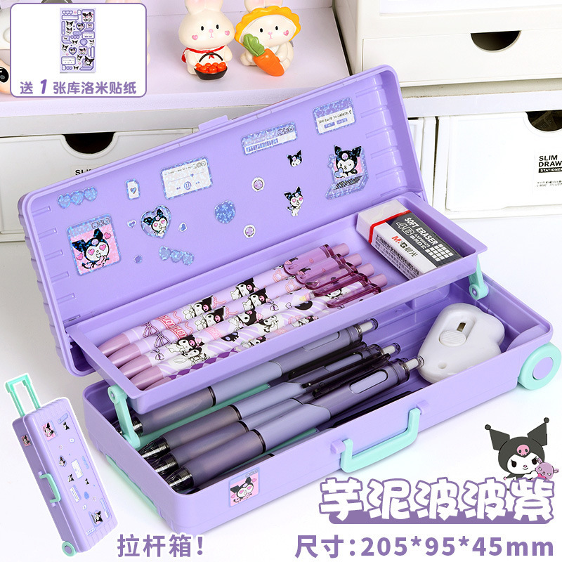 고급스러운 어린이 푸시-풀 연필 상자 도매 다기능 더블 레이어 플라스틱 연필 가방 학생 대용량 만화 문구 상자