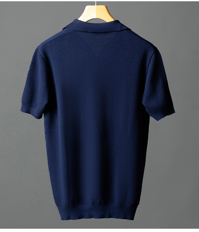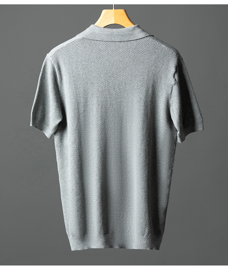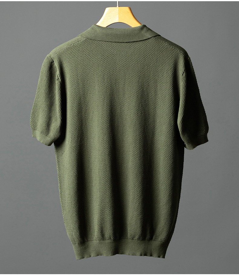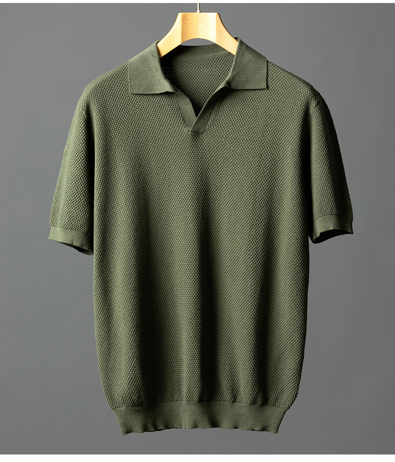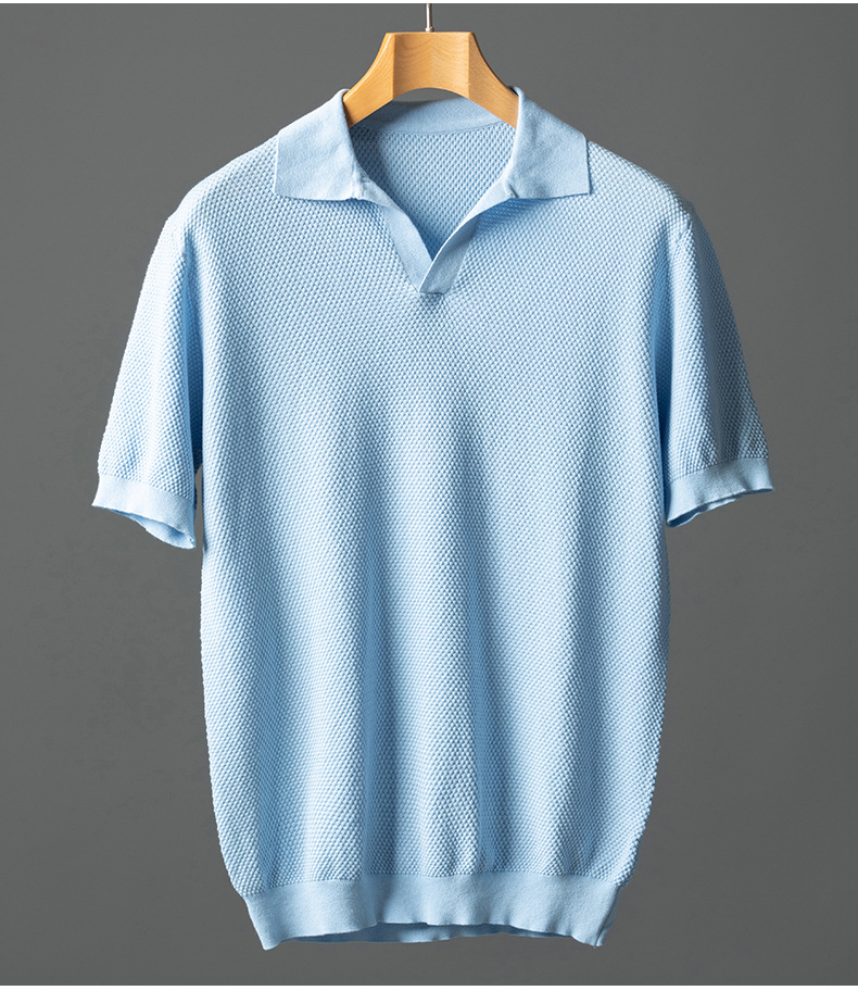 남성용 순면 반팔 파인애플 니트 여름 갈매기 칼라 통기성 가벼운 티셔츠 패션 캐주얼 니트웨어 남성복