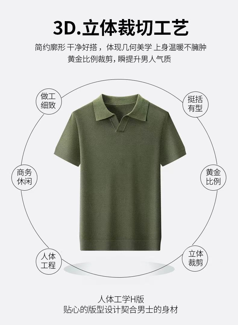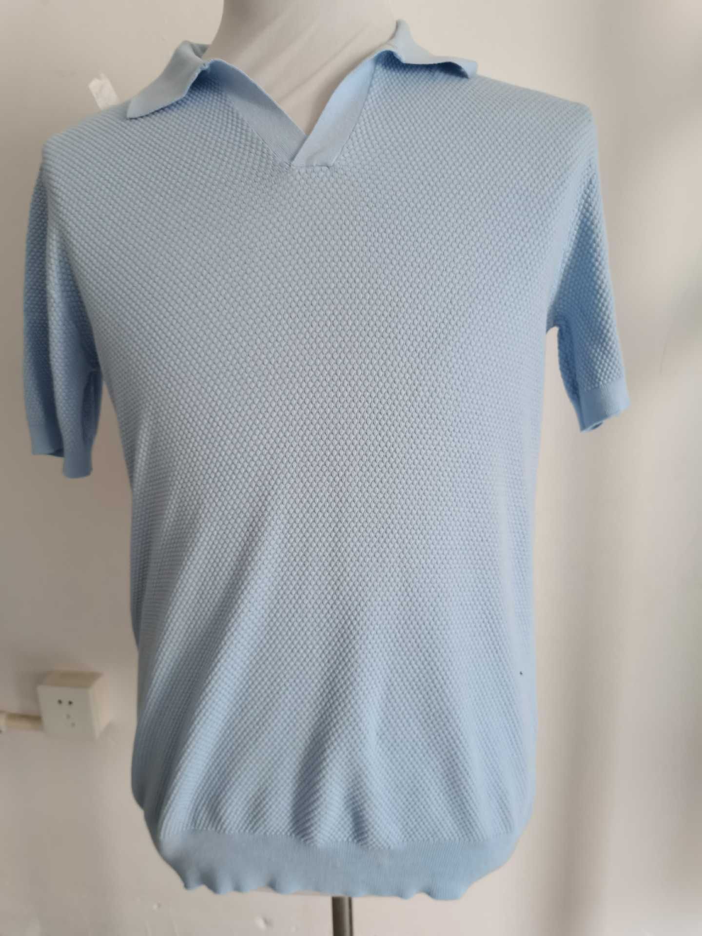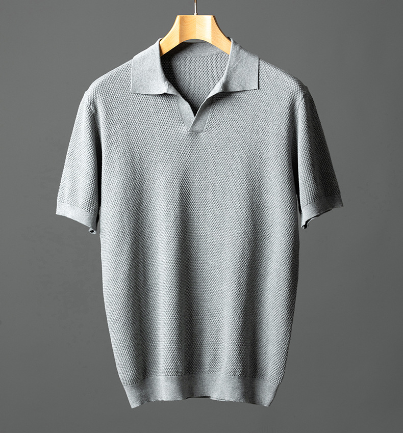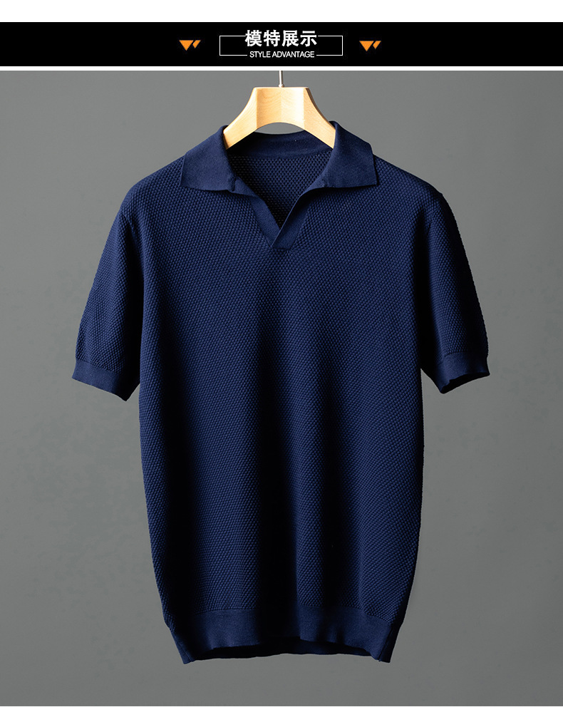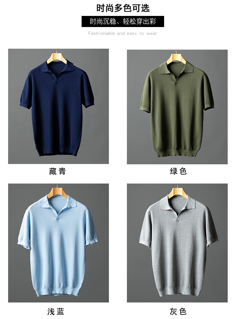 남성용 순면 반팔 파인애플 니트 여름 갈매기 칼라 통기성 가벼운 티셔츠 패션 캐주얼 니트웨어 남성복스토어 가기
