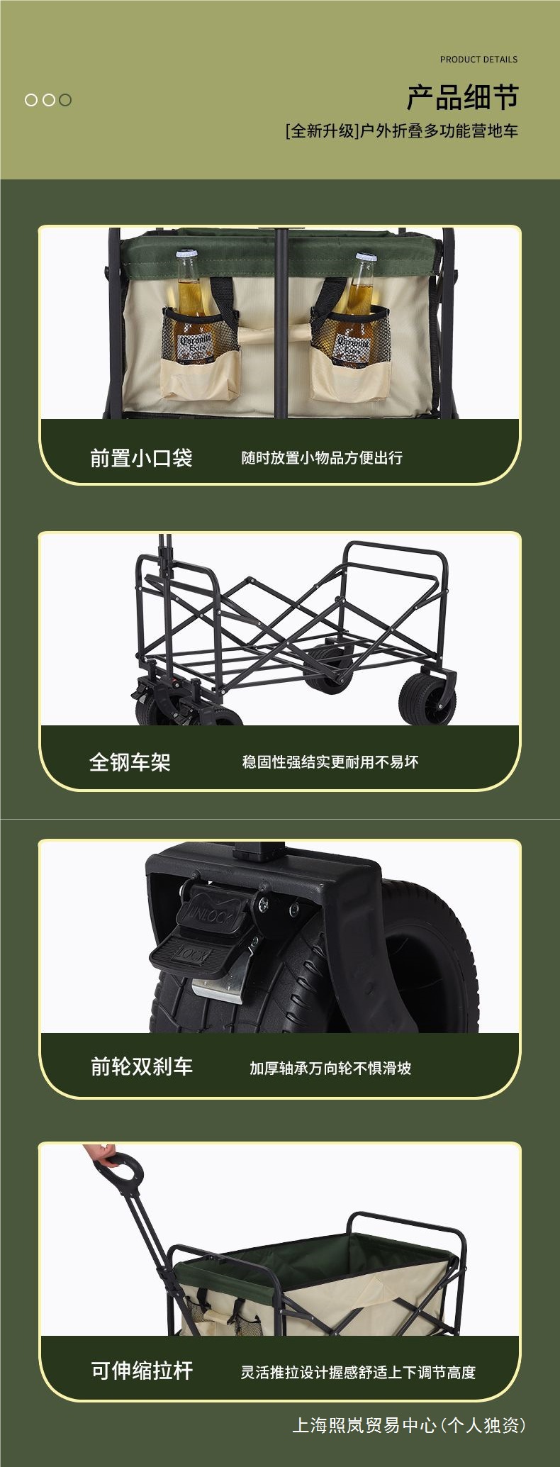 • 캠퍼밴 + 접이식 스톨 테이블 - 브레이크가 장착된 대형 오프로드 휠(카키색)