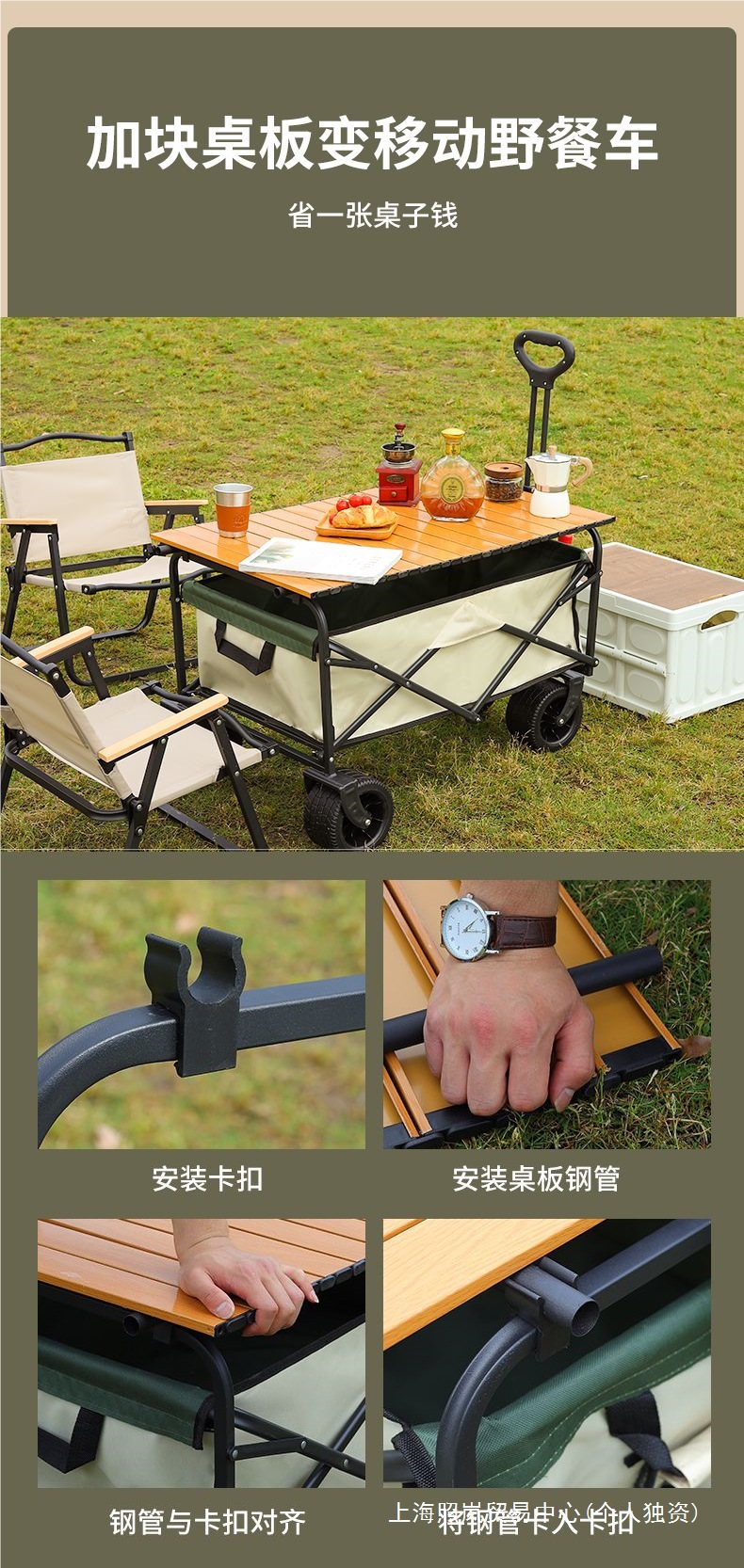 • 캠프카 + 접이식 스톨 테이블 - 대형 트레일러 탱크 휠(베이지색)
